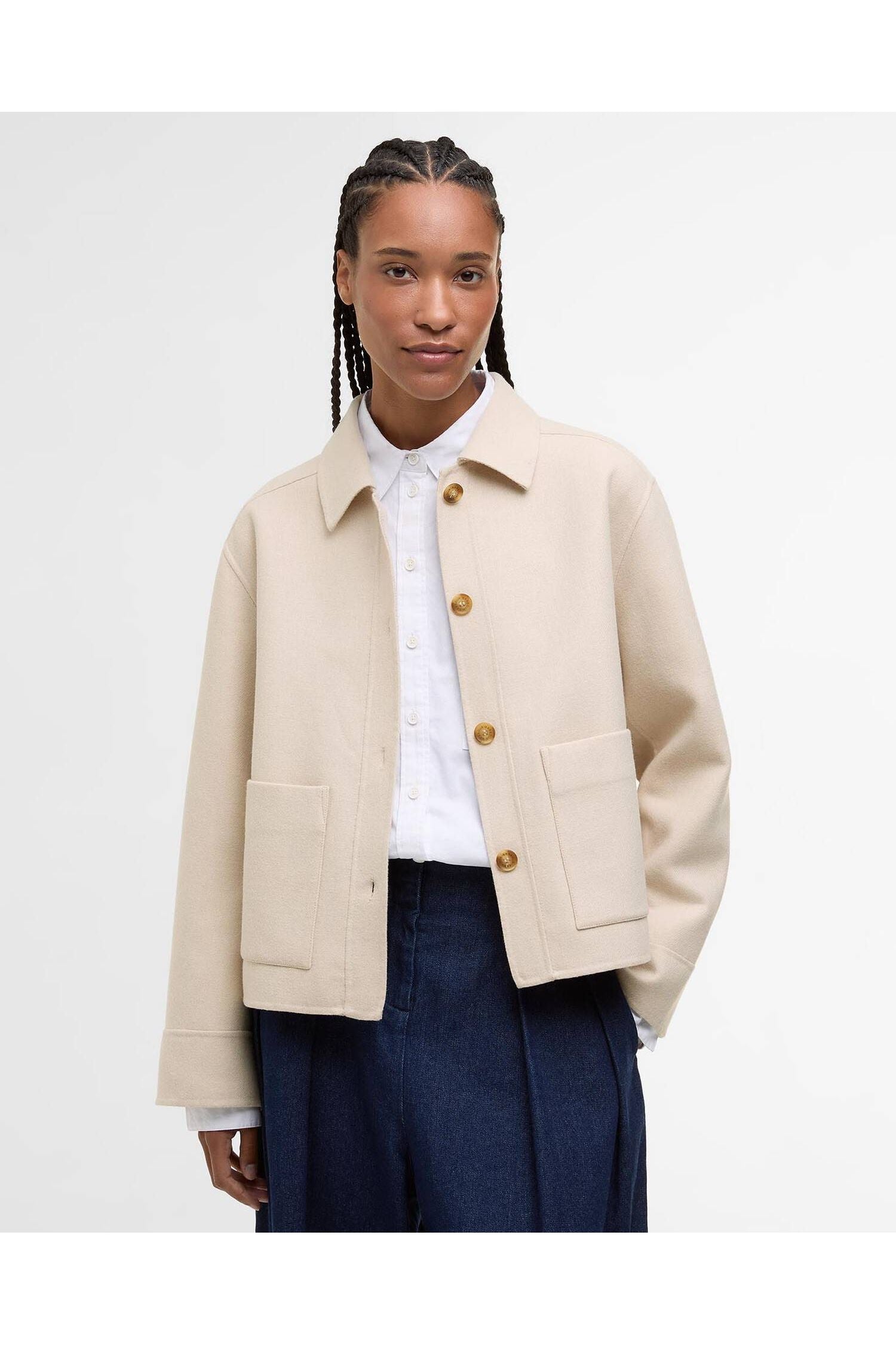 The Barbour Ashdon Overshirt is crafted from a double-faced wool blend for warmth and comfort.
