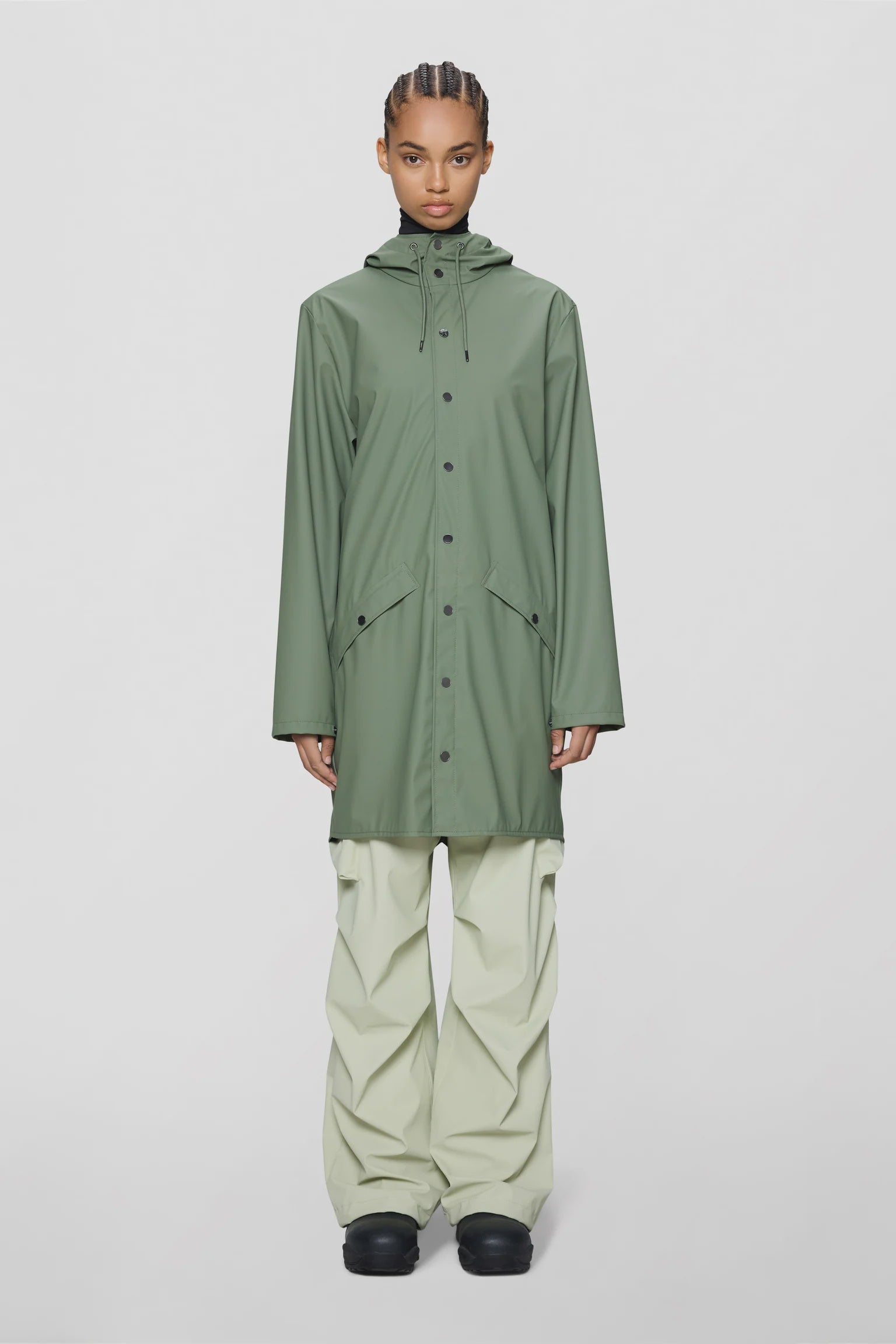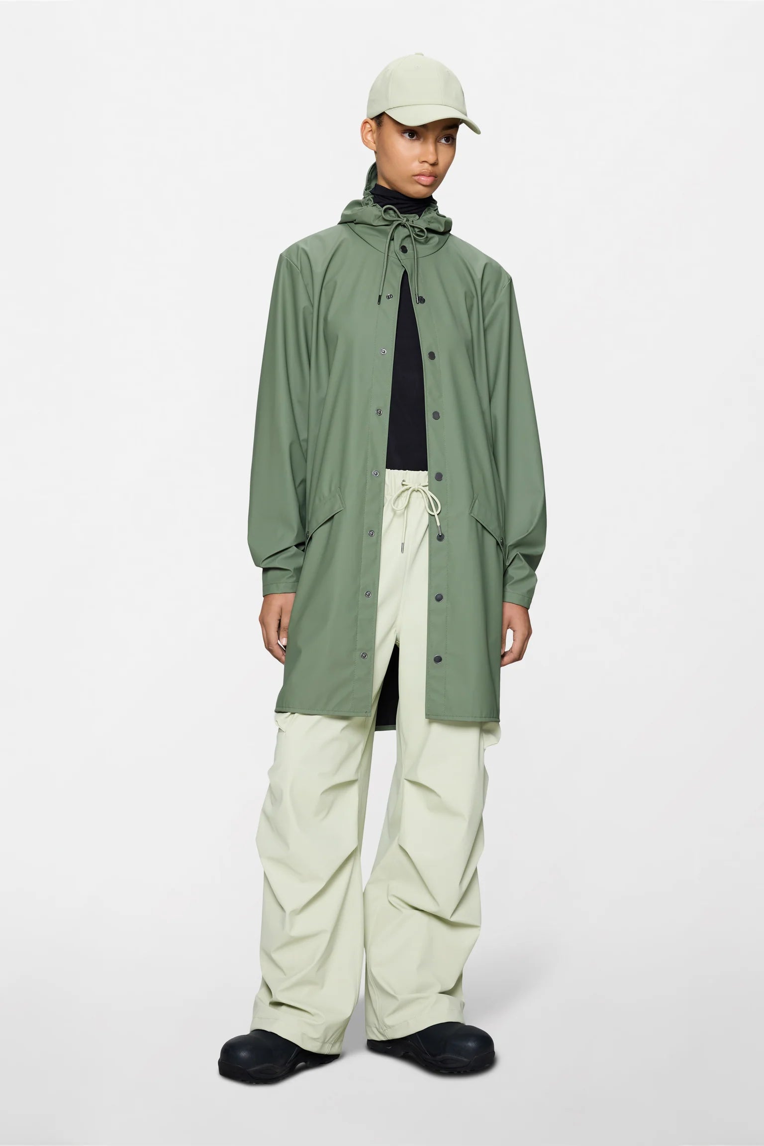 Rains’ Long Jacket is a longer version of the urban Jacket and both are essential Rains classics. Made from a water-resistant lightweight fabric with a matte finish, this unisex rain jacket has an elegant appearance. Designed in a casual raincoat silhouette, it has double welded slanting pocket flaps, adjustable cuffs and a fishtail.