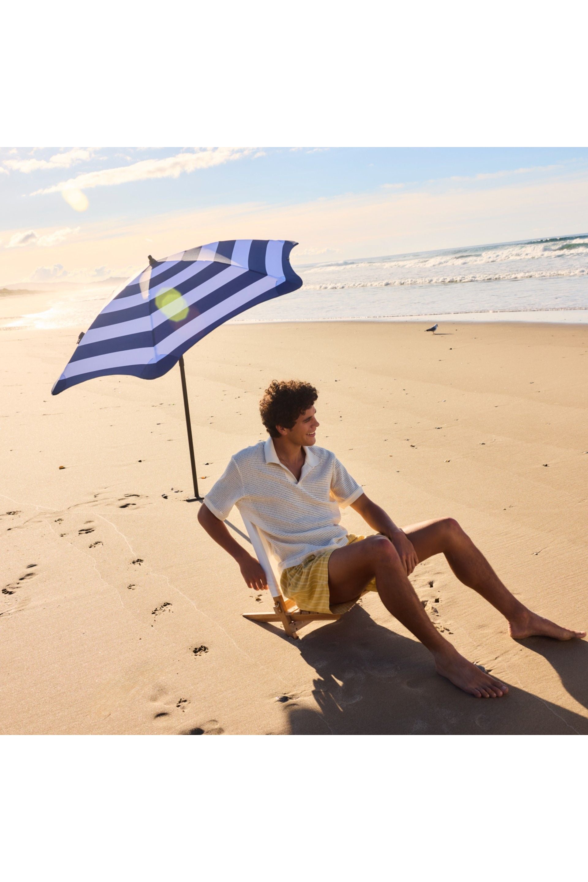 Engineered for durability and comfort, this premium beach umbrella combines UPF 50+ sun protection with sustainable materials, making it ideal for long, lazy days by the water.