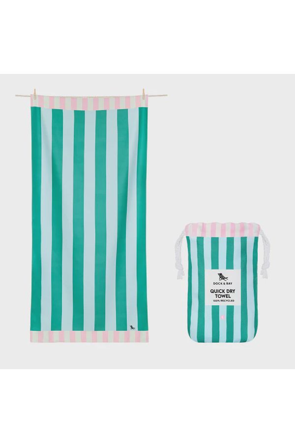 No time to wait for a towel to dry? Neither did the founders of Dock & Bay. Grab a quick-dry beach must-have from Dock & Bay's classic Cabana collection to eliminate damp smells and the hassle of lugging around a massive towel.