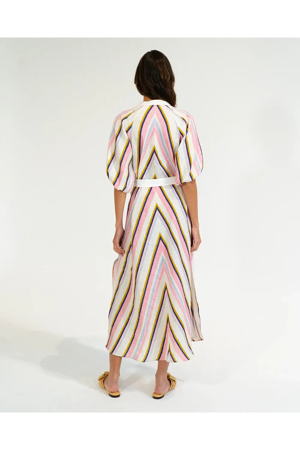 The Cannon Dress is a timeless silhouette with a modern edge. Its bias-cut construction drapes effortlessly, while a contrast stand-up collar and button-through placket add contemporary tailoring details. Raglan sleeves with stitched tucks and elastic cuffs create soft volume, making it perfect for casual days or elevated evenings.