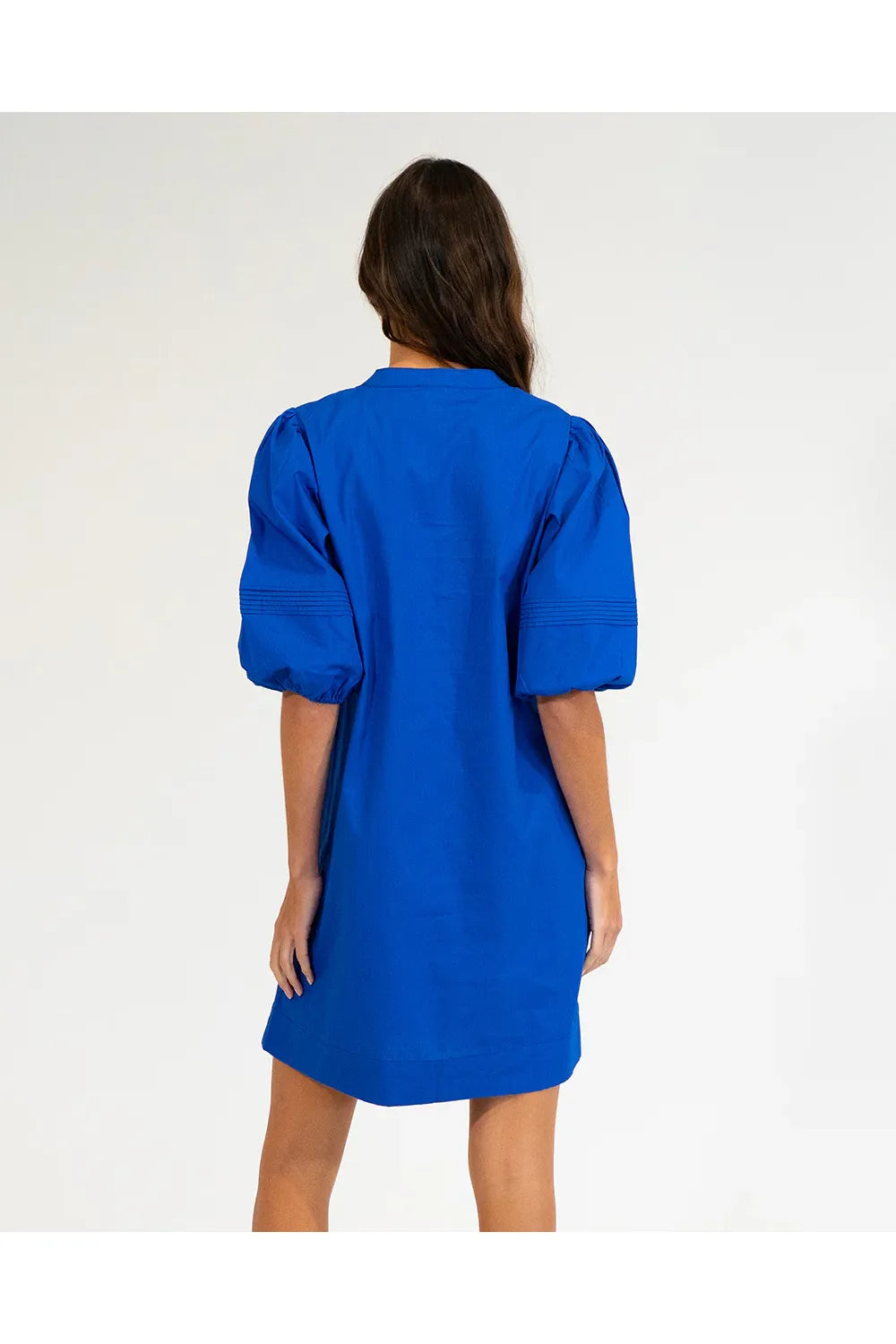 The Monterey Mini Dress is your go-to for effortless, everyday style. Crafted from crisp 100% cotton poplin, its A-line silhouette feels fresh and comfortable. Pin-tuck detailing along the front adds texture, while gold feature buttons and soft, full sleeves create a relaxed yet polished look, perfect for any occasion.