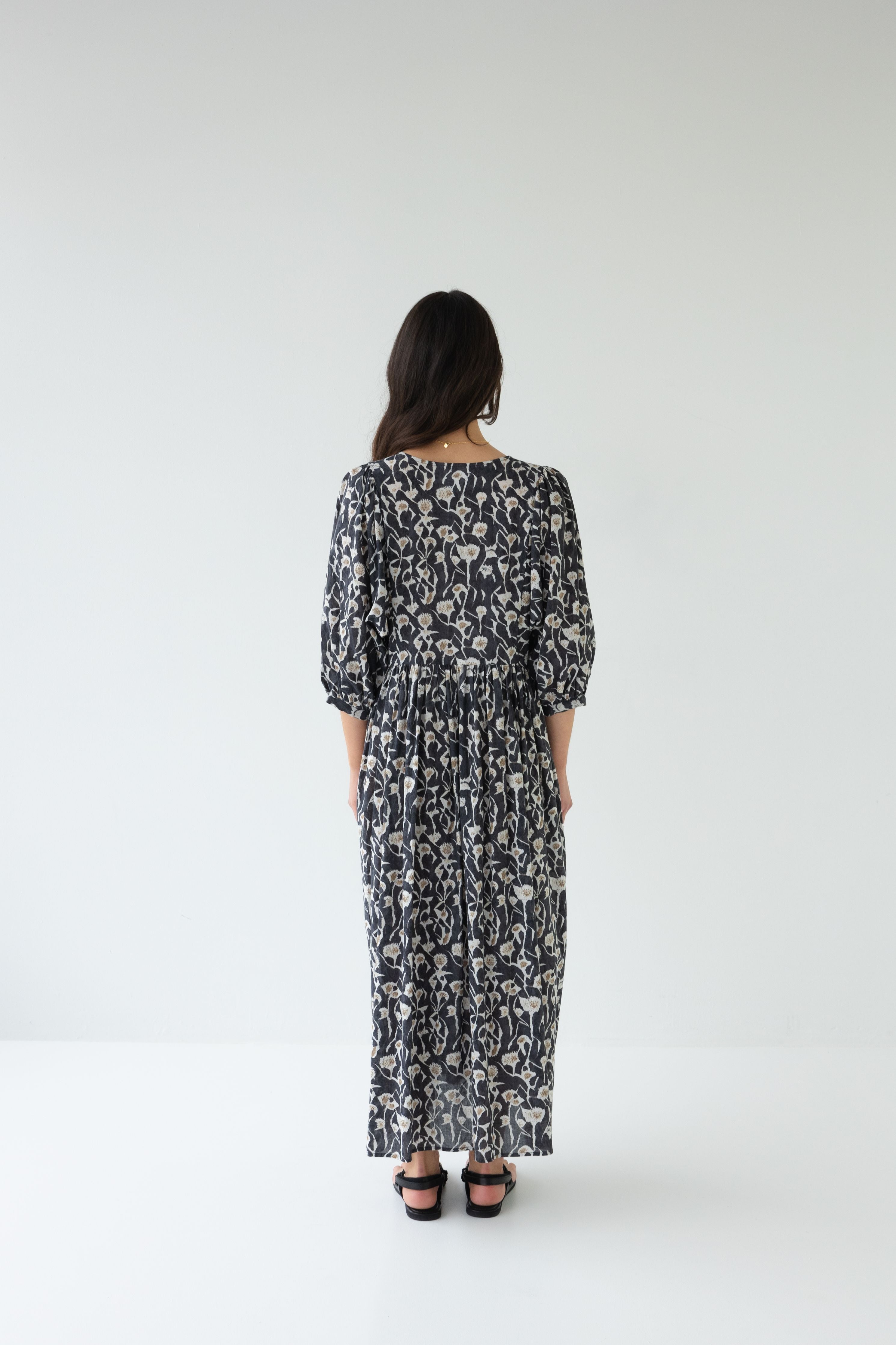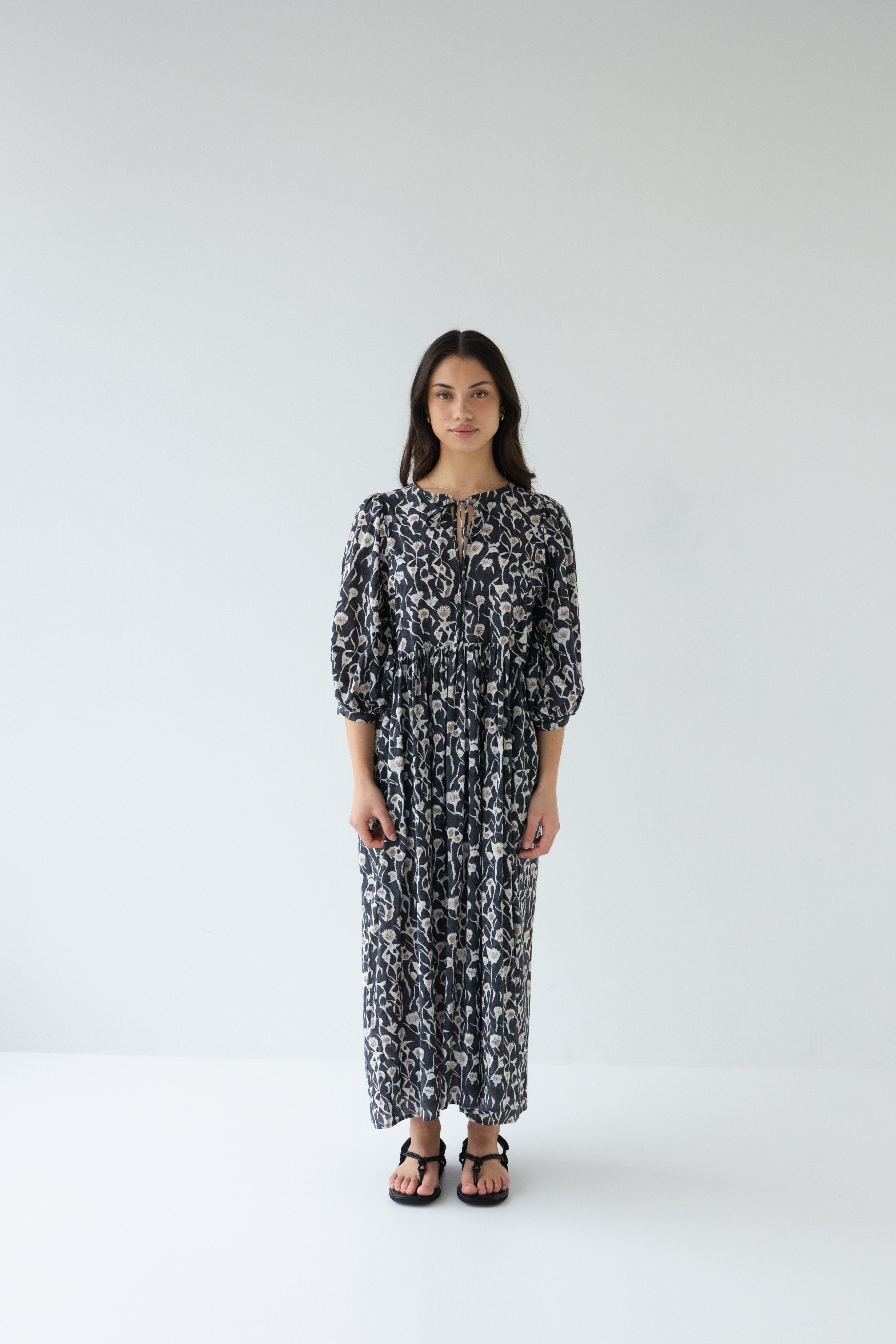 Statement sleeve midi dress with a relaxed silhouette & cute ties. Throw on & go. Pockets of course.