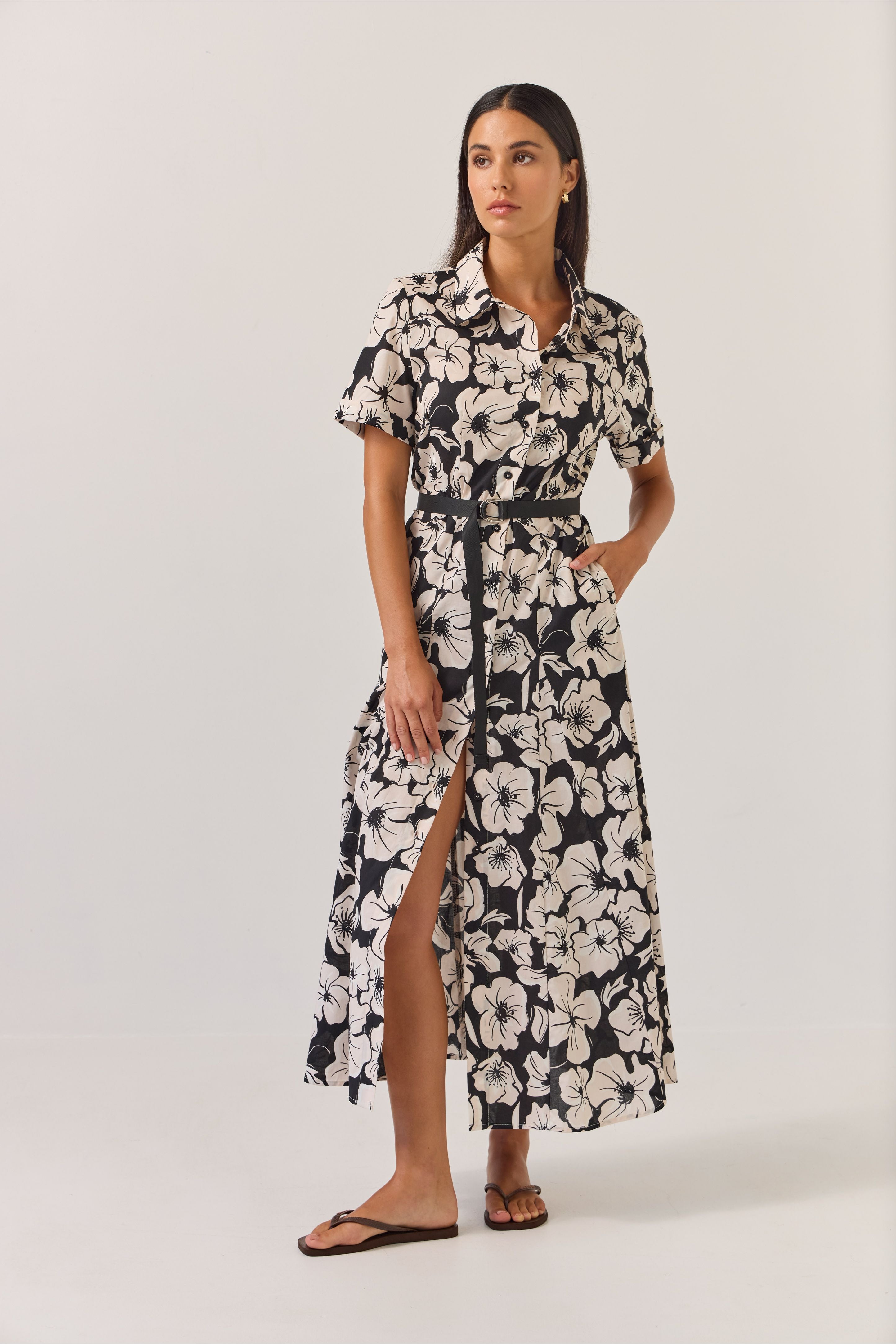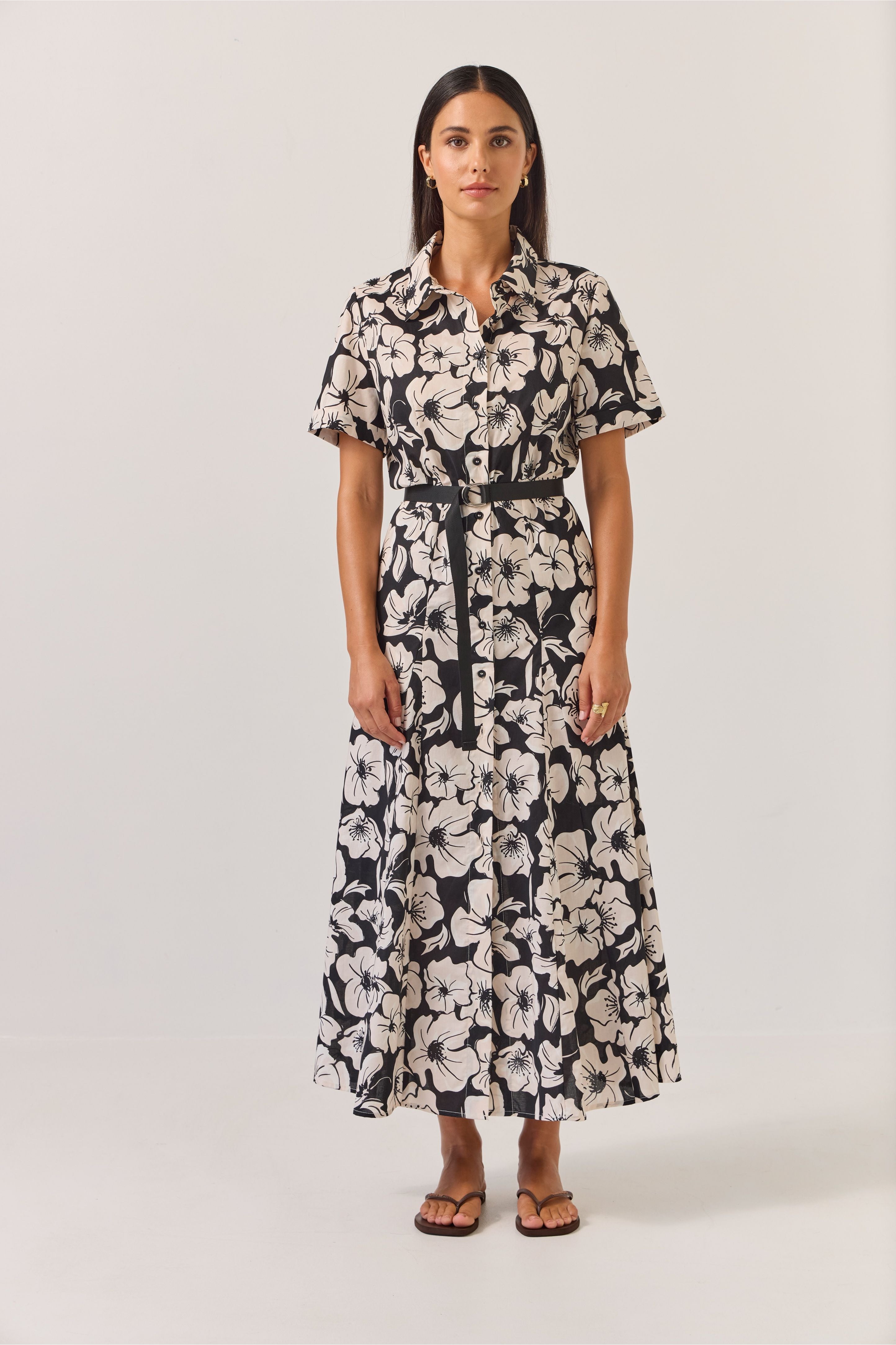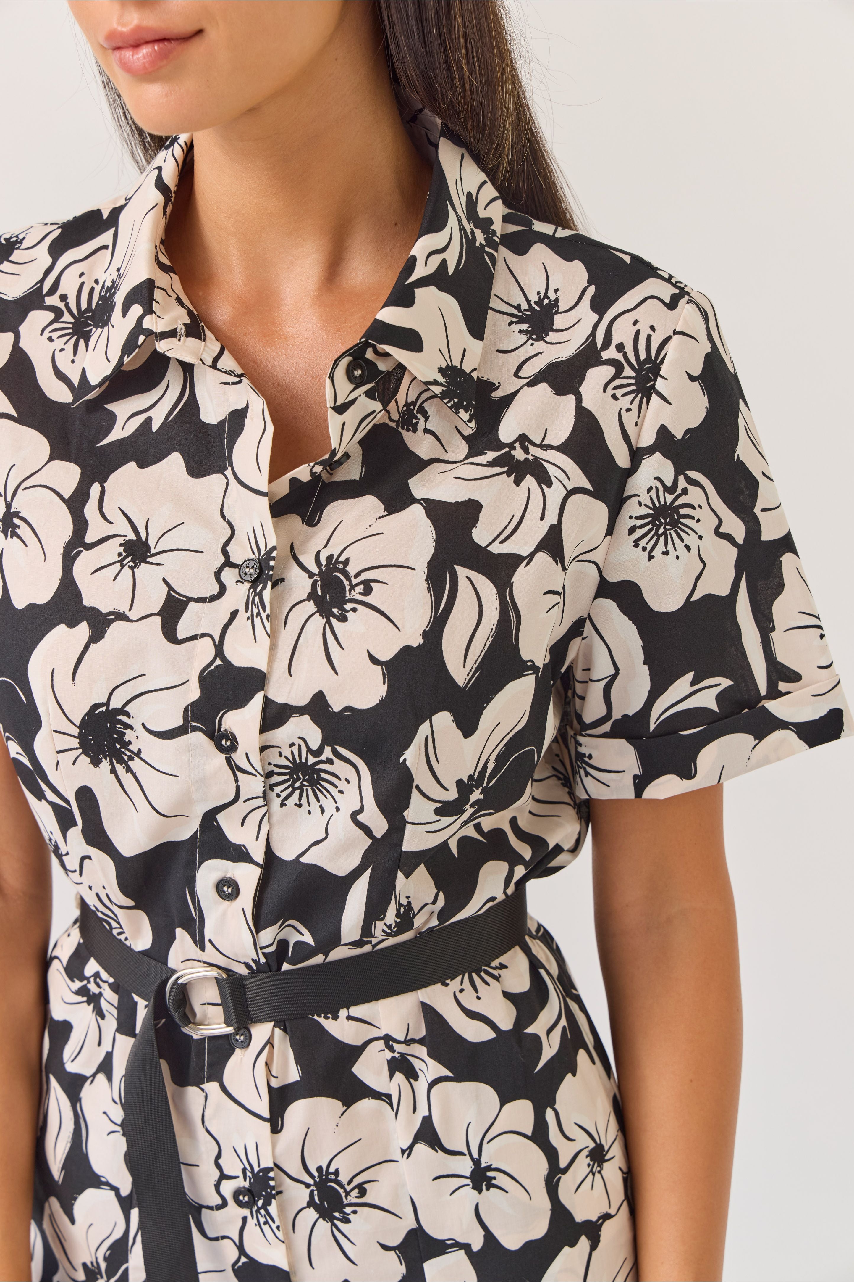 Godet Shirt Dress | Black Floral