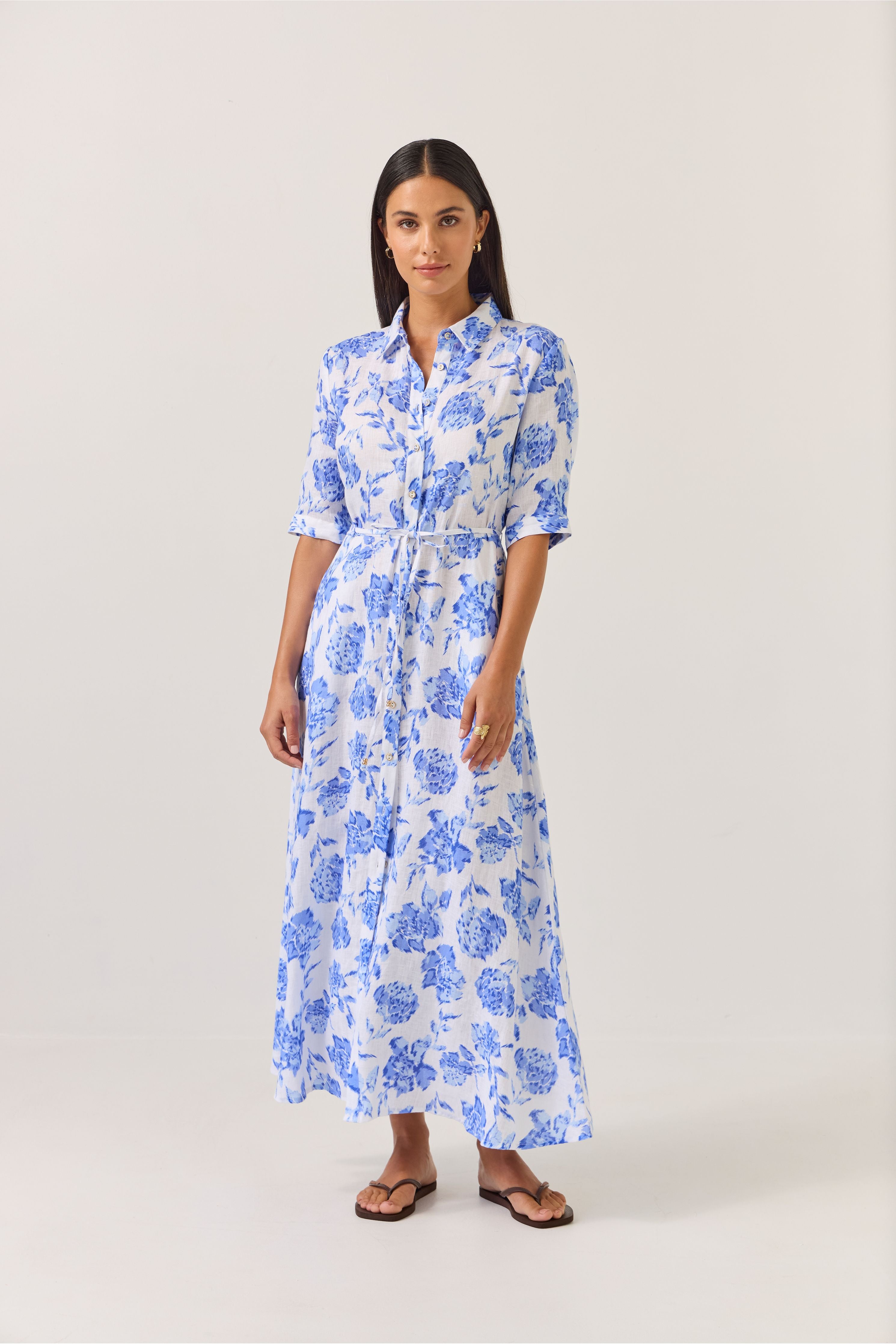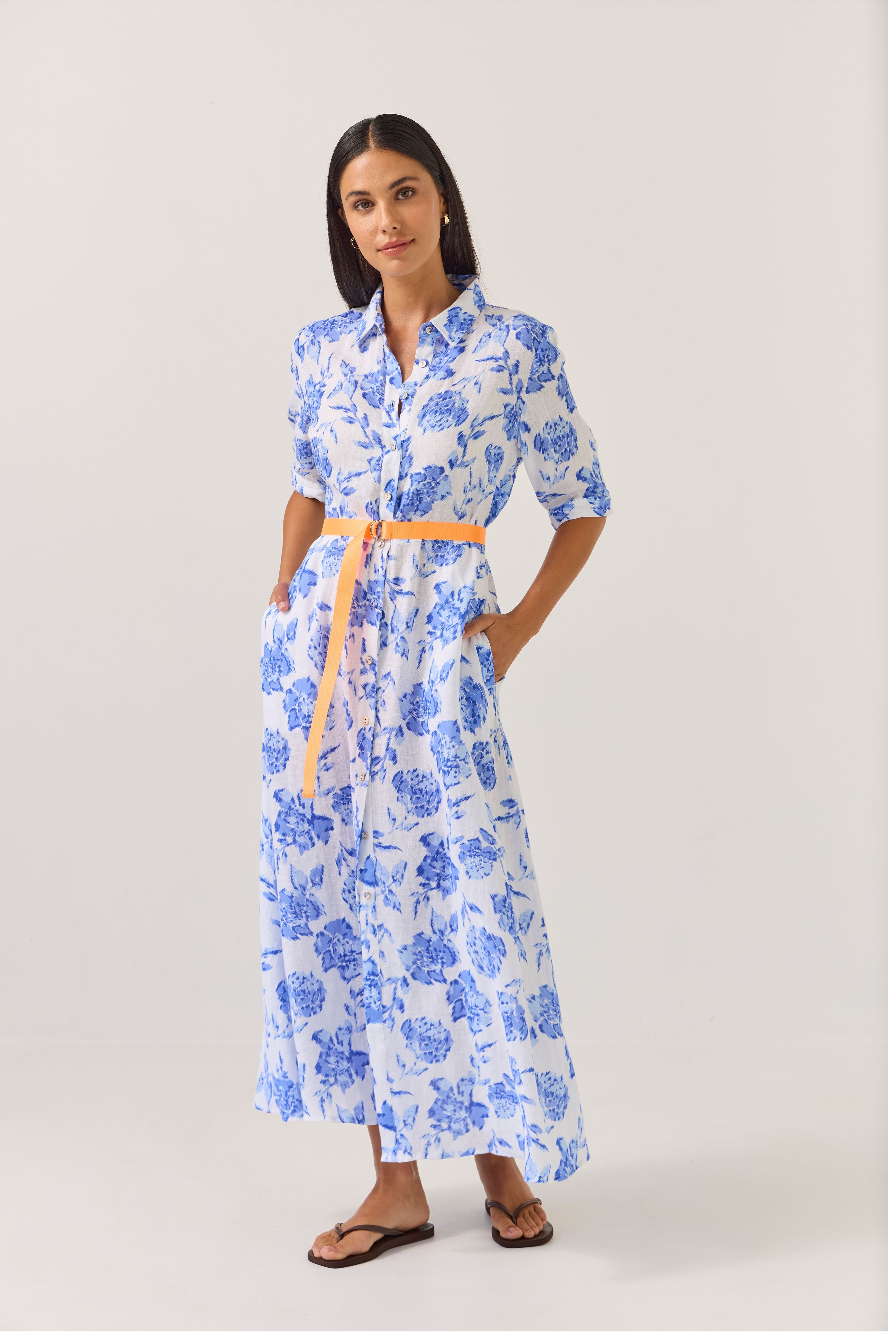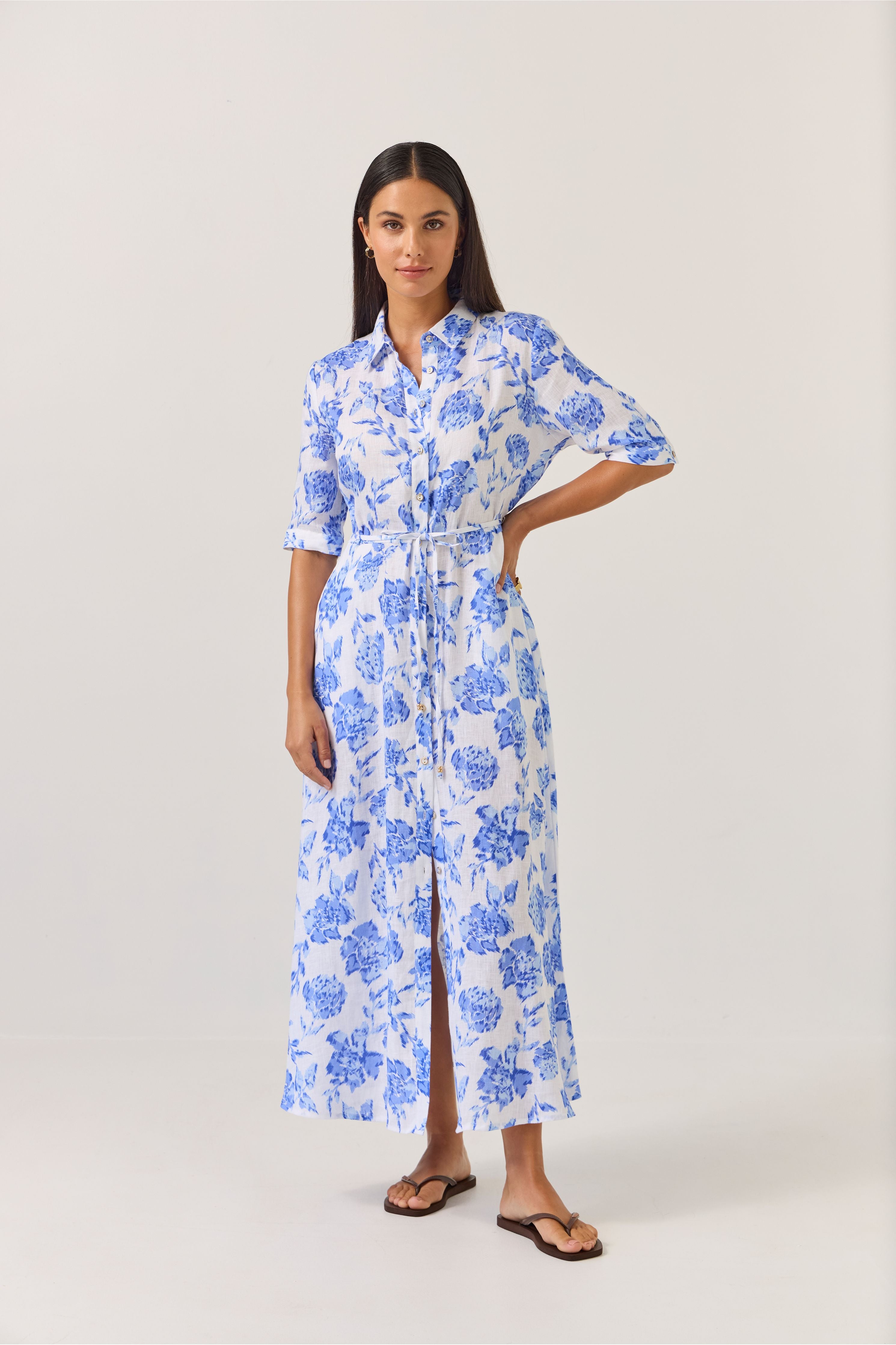 Everyone’s best friend, Nicola is here and she’s in a stunning blue floral print fabric! Tuesday's best-selling shirt dress for a reason, she ticks all the boxes with her effortless impact.