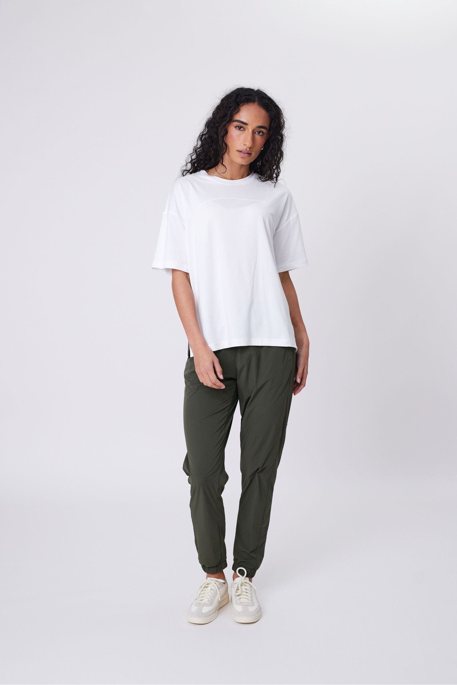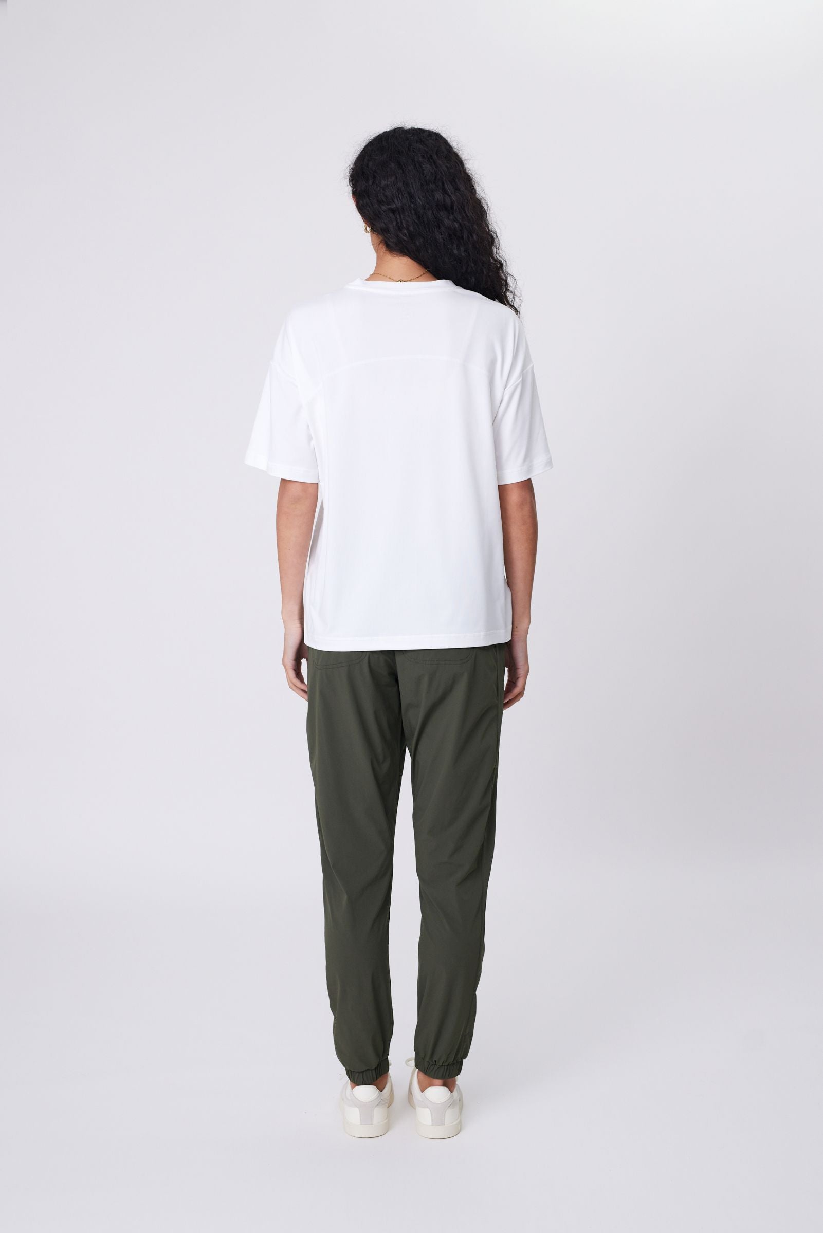 Upgrade your active essentials with the Half Time S/S Tee, a staple that blends sporty style with everyday ease. Defined by the sporty cover seam detailing and it's relaxed fit, this short-sleeve tee is crafted in a soft, peached knit fabric with a lustrous drape. The self-fabric crew neck band ensures a streamlined look, while the curved seam details at the front and back add a unique touch. Designed with side splits and drop shoulders for the ultimate freedom of movement, this tee is perfect for layering or wearing solo.