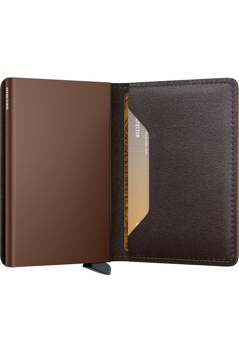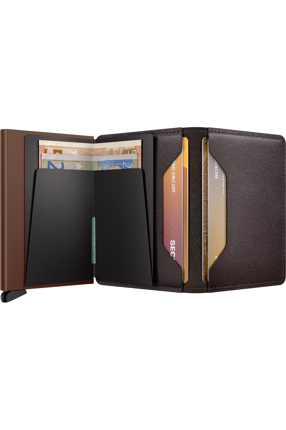 Its slim profile makes the Slimwallet fit perfectly into every pocket. The open exterior is cut extra wide to hold cards, banknotes and receipts. The Cardprotector mechanism allows you to slide out cards with one simple motion, while the aluminium protects your cards from bending, breaking and unwanted wireless communication.