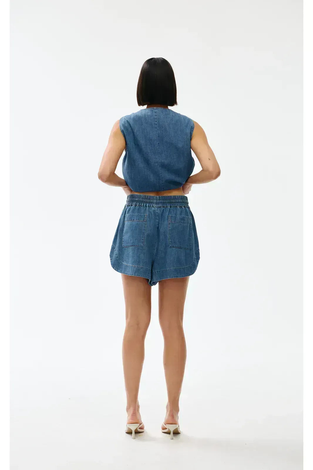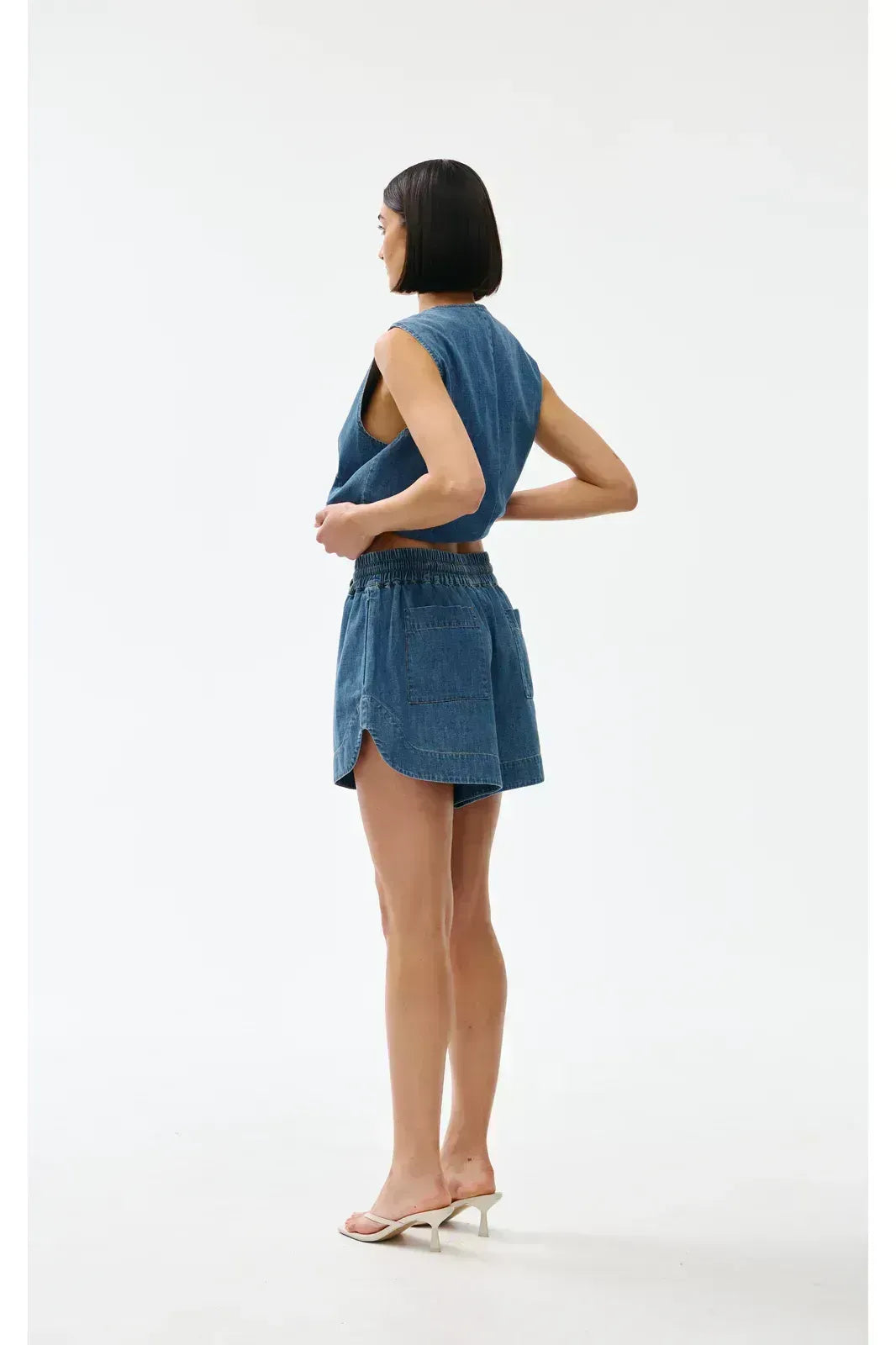 The JuniperShortDenimis made in our classic, flattering short shape.They featurein-seam pockets, an elasticated waistband and waist-tie.