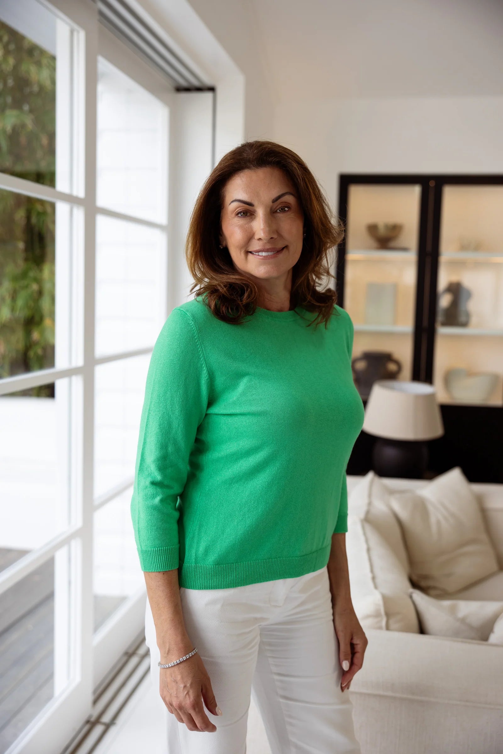 Crafted from a luxurious cotton cashmere blend, the Avery Jumper offers a soft, lightweight feel with subtle warmth. Designed with a fitted silhouette and classic crew neckline, it features elegant 3/4 sleeves for a refined everyday look. Perfect for layering or wearing on its own, this versatile piece is a timeless wardrobe essential.