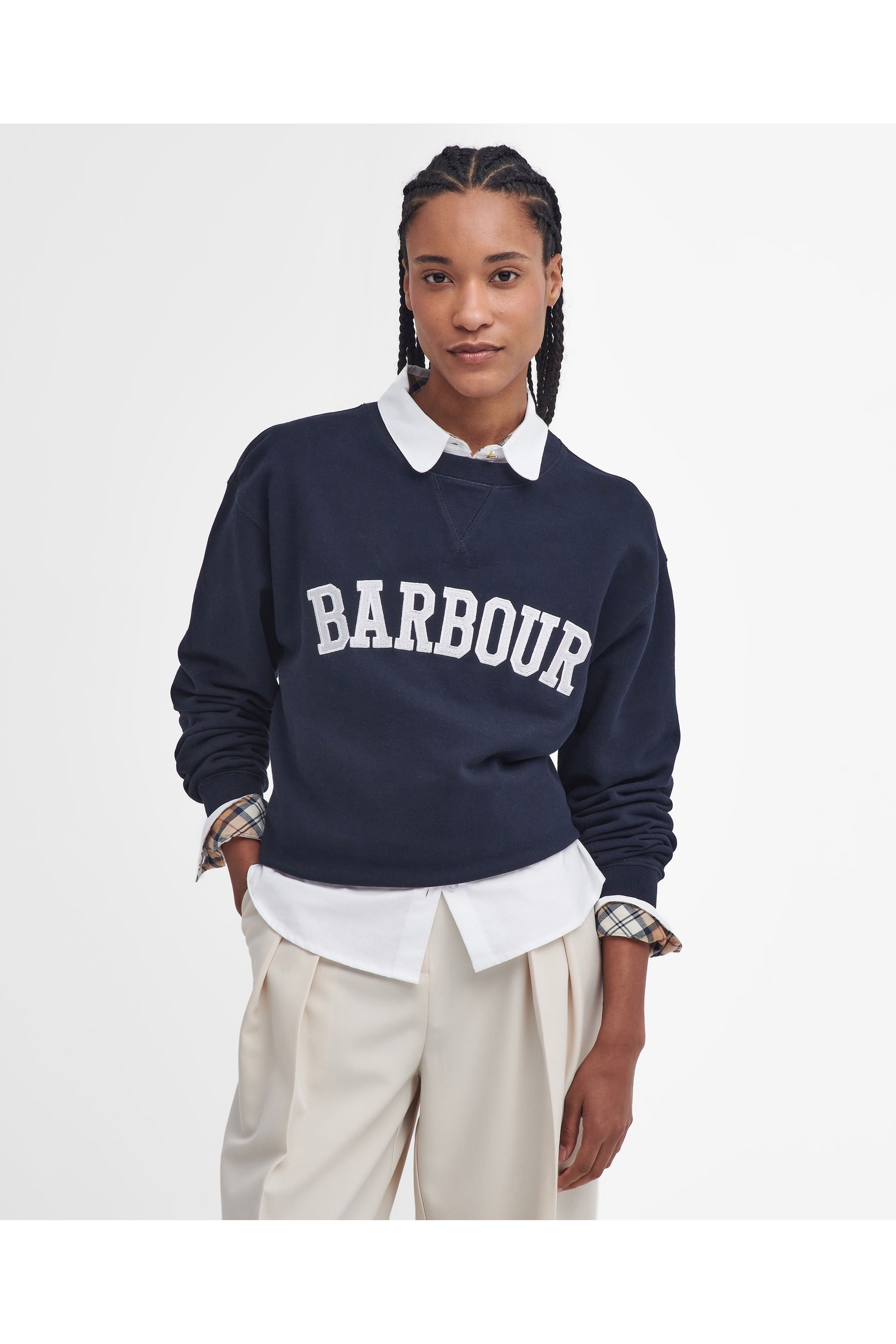 The Barbour Northumberland Sweatshirt features a varsity-inspired design for walks along the coast or in the countryside. The perfect layering staple, this sweatshirt boasts a Barbour embroidered graphic to the chest and is crafted from 100% cotton for premium comfort. The perfect pairing with jeans or a midi skirt, this jumper adds timeless style to any outfit eventuality.