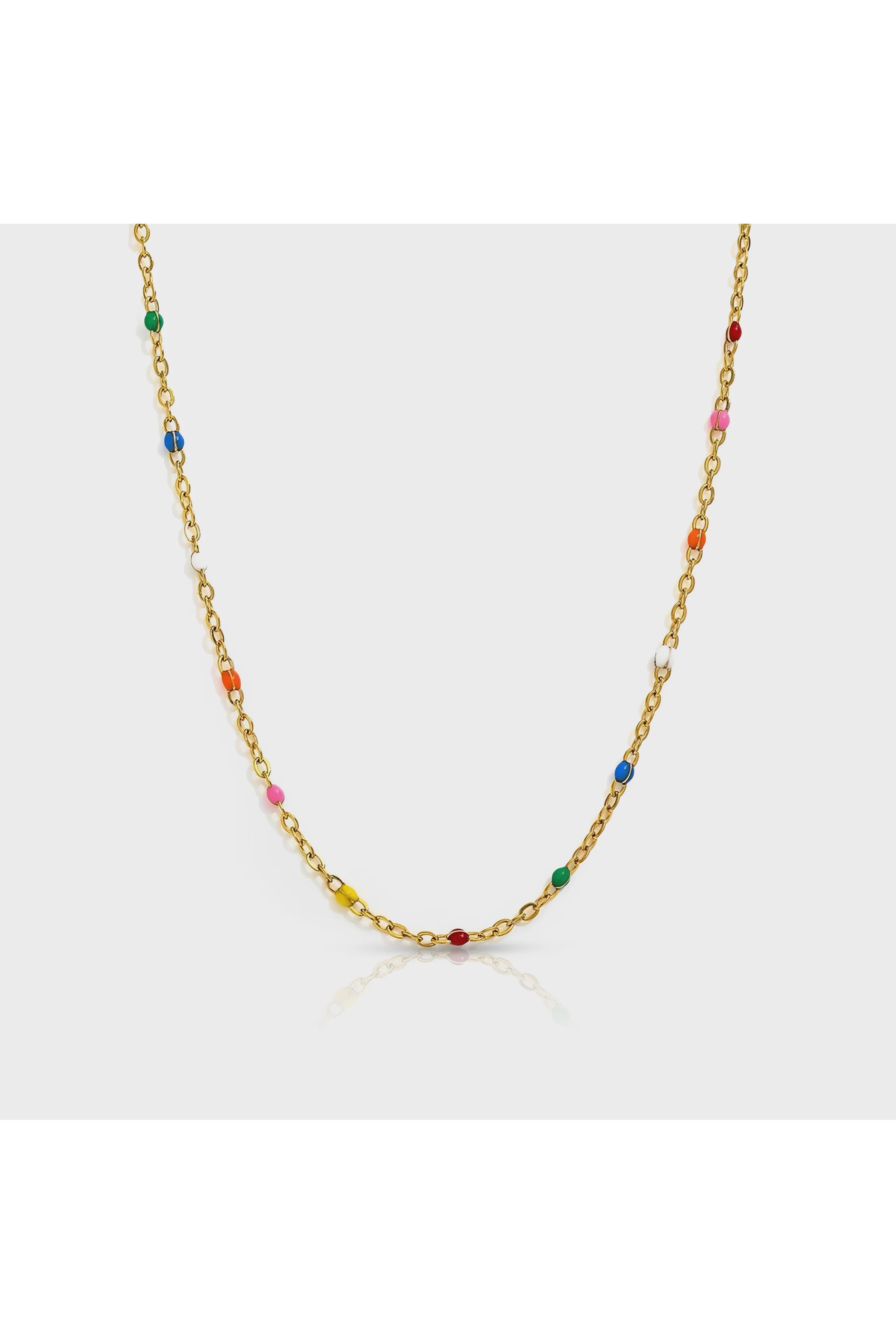 Brighten up your jewellery collection with EVER's beautiful Colour Wave Necklace. This eye-catching piece features lively enamel beads gracefully strung on a sleek gold chain, making it easy to shine and attract compliments wherever you go.