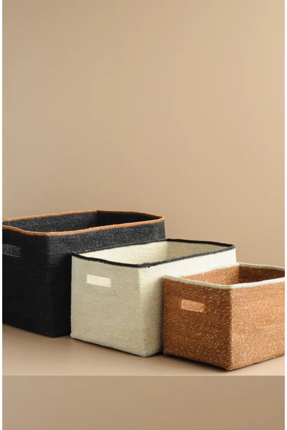 This versatile low profile shape is perfect for shelves, under a floating vanity or to house your bits and pieces in your lounge, wardrobe, linen cupboard, pantry and childrens' bedrooms. Low in height, but generous in volume, when displayed together with its like-coloured variations you can create a visual nest of rich, woven hues.