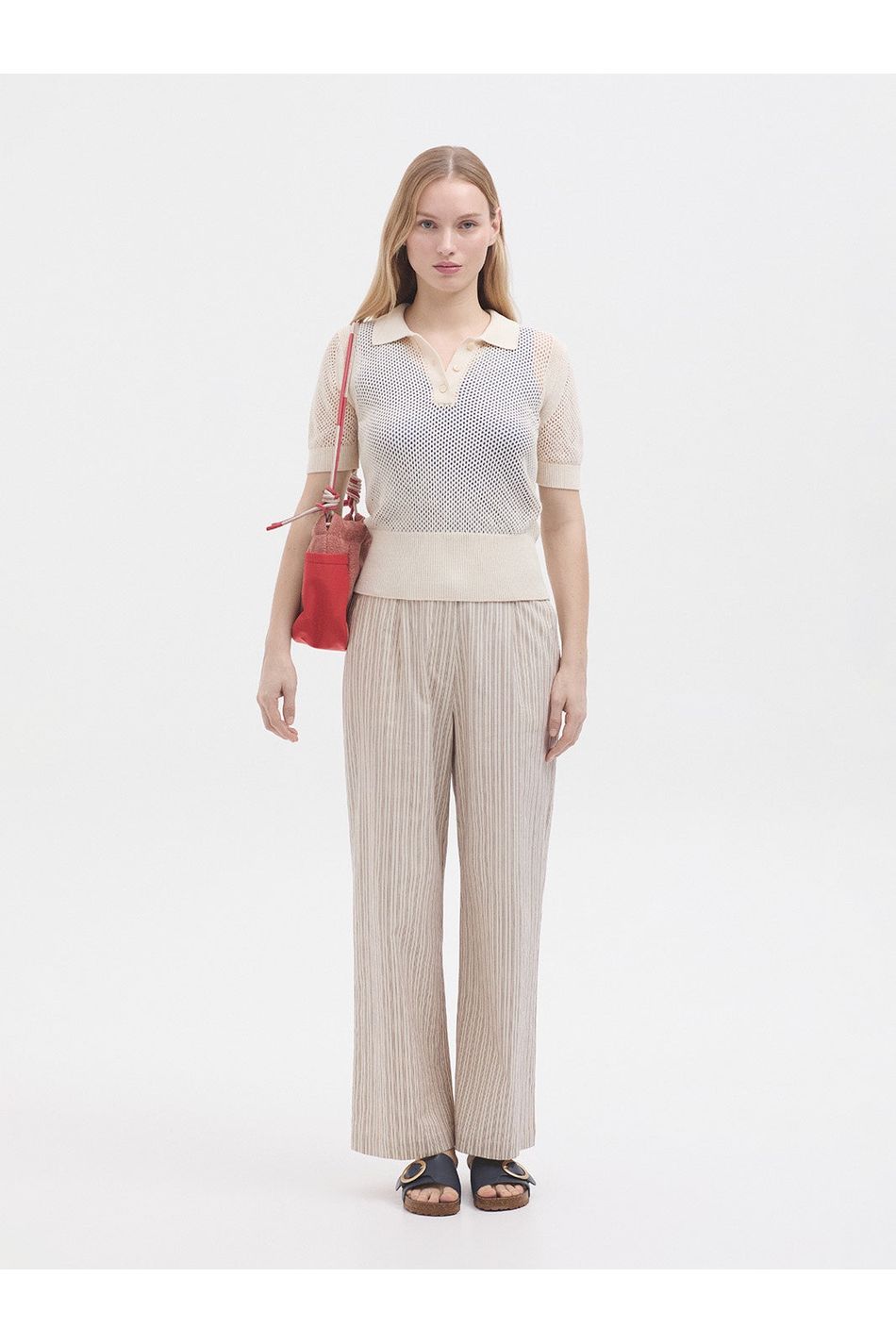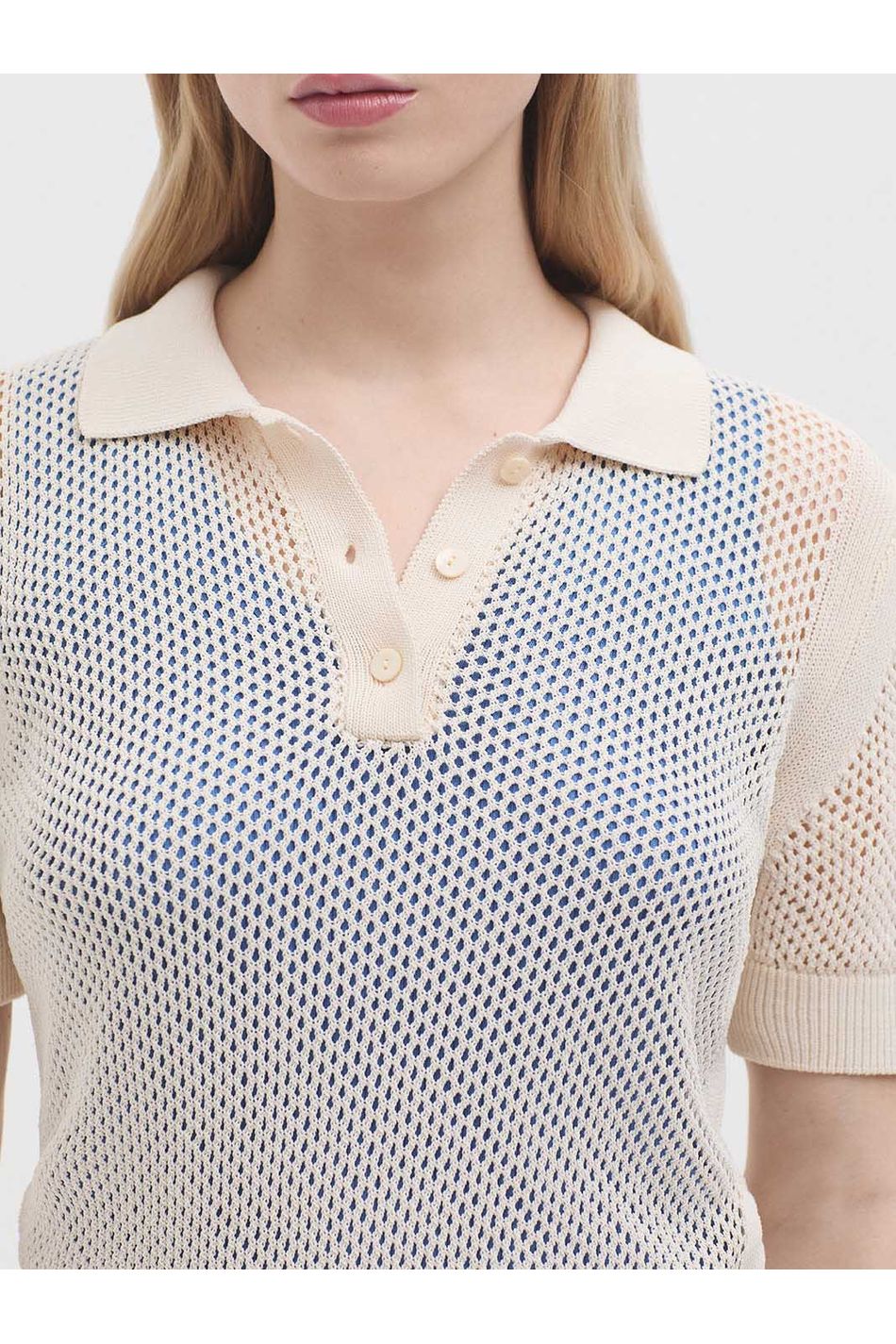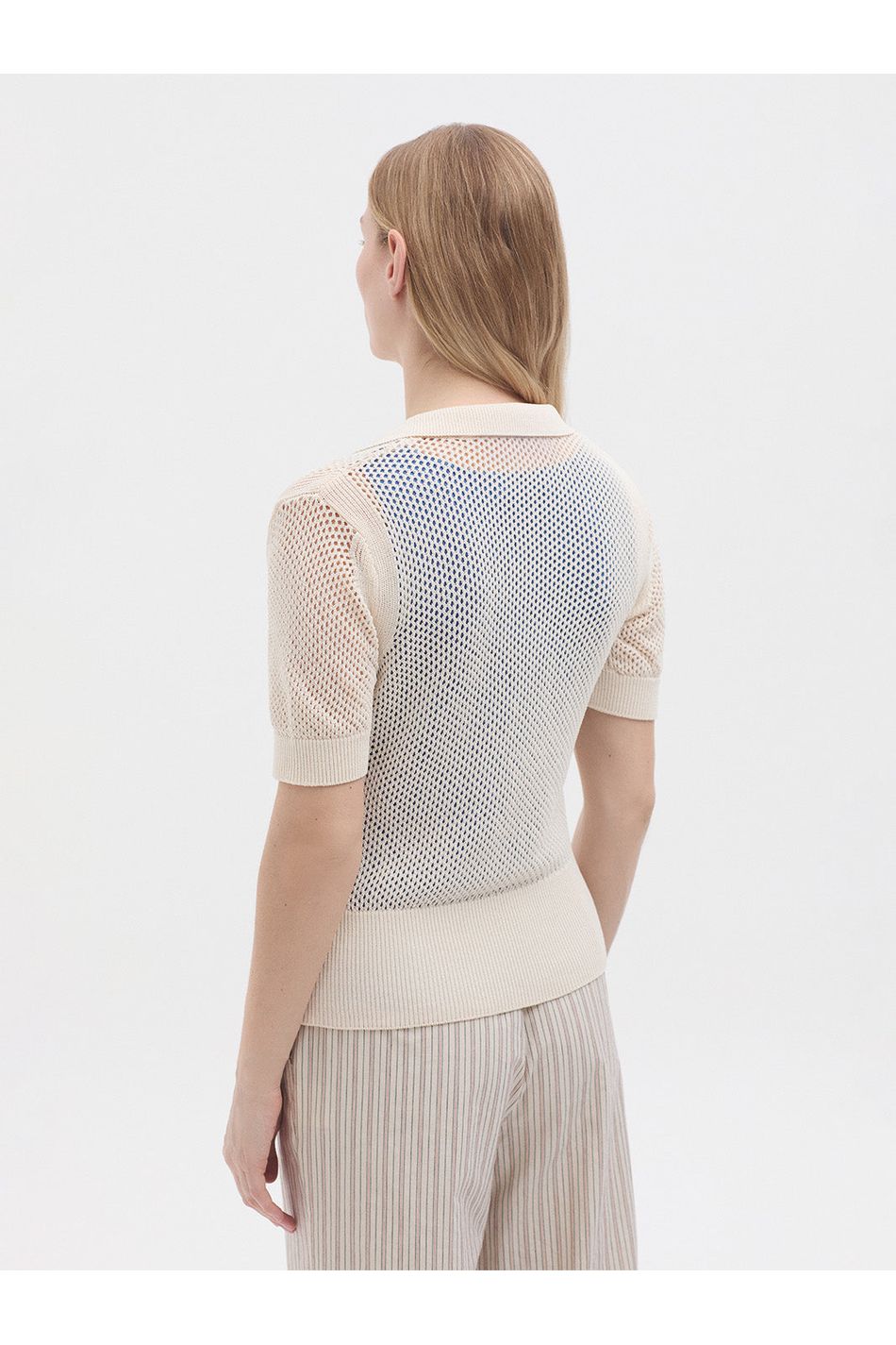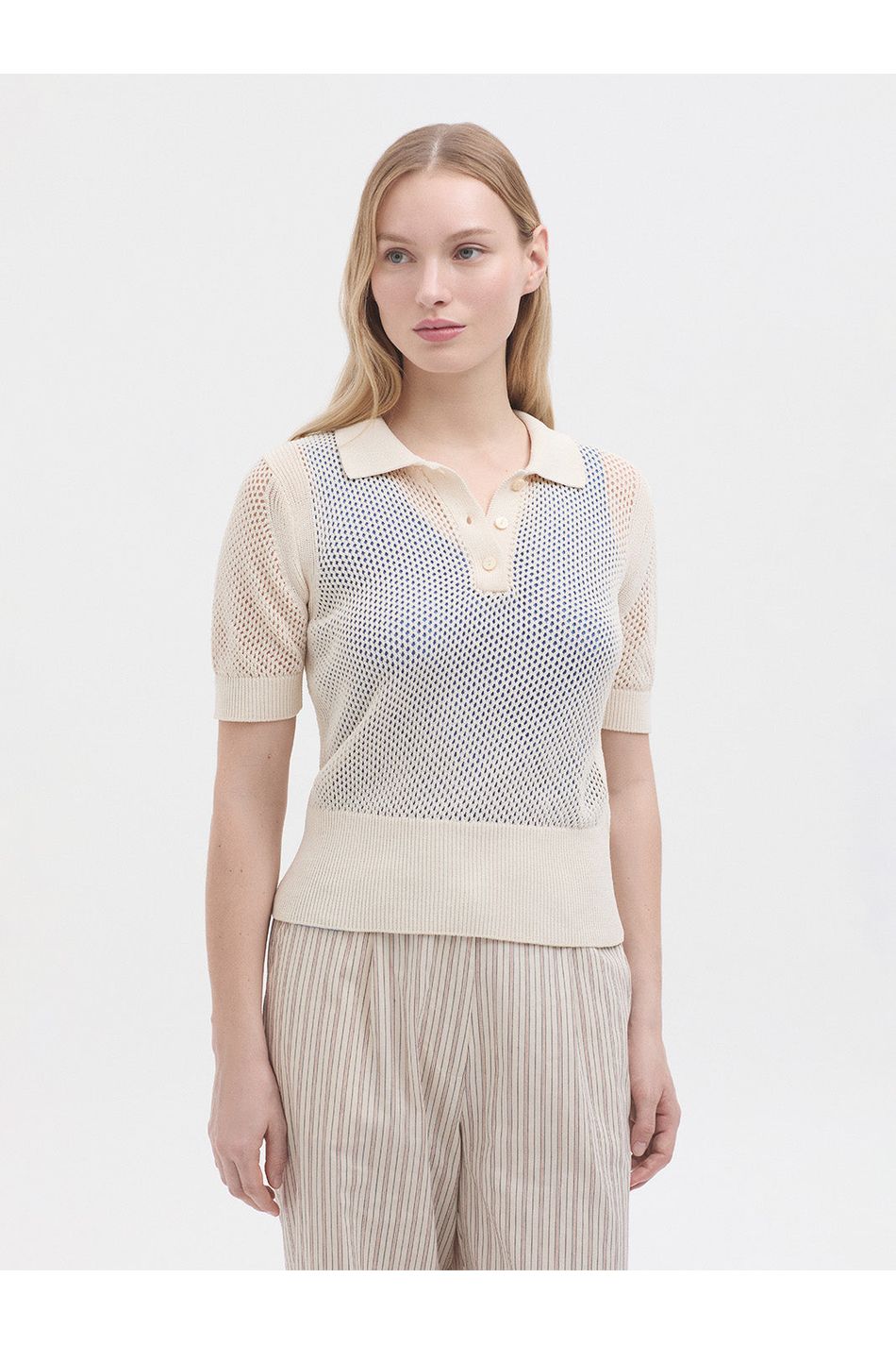 A modern twist on classic knitwear, this openwork top features a button-up polo neckline and short sleeves. Crafted from a breathable cotton-nylon blend for comfort and durability.