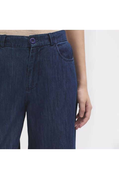 A timeless essential with a modern twist, these denim trousers by Nice Things offer everyday comfort and effortless style. Crafted from soft, mid-weight denim, they feature a flattering high-rise waist, wide leg silhouette, and subtle tailoring through the hip for a polished yet relaxed fit.