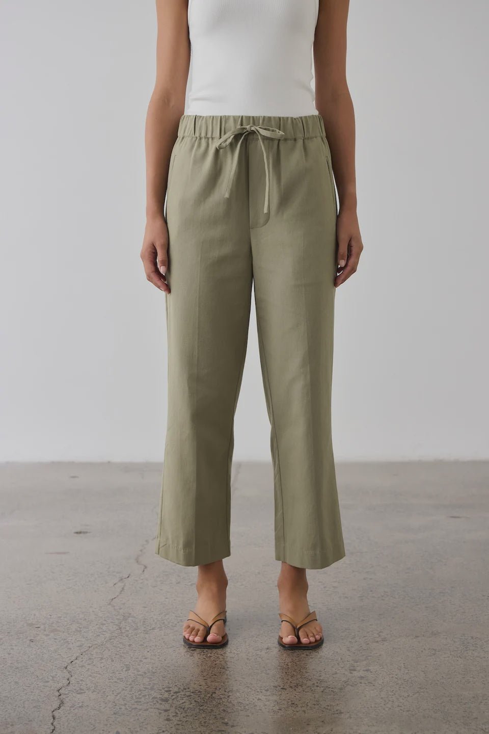 Laid-back and low-key polished. These women's cotton pants are cut with a relaxed, wide leg and cropped just above the ankle for a modern, easy silhouette. The pull-on style with an adjustable waist tie keeps it casual but clean, while side pockets and a back patch pocket add everyday function. Made from soft, breathable cotton they are your go-to for everything from city errands to beach weekends.