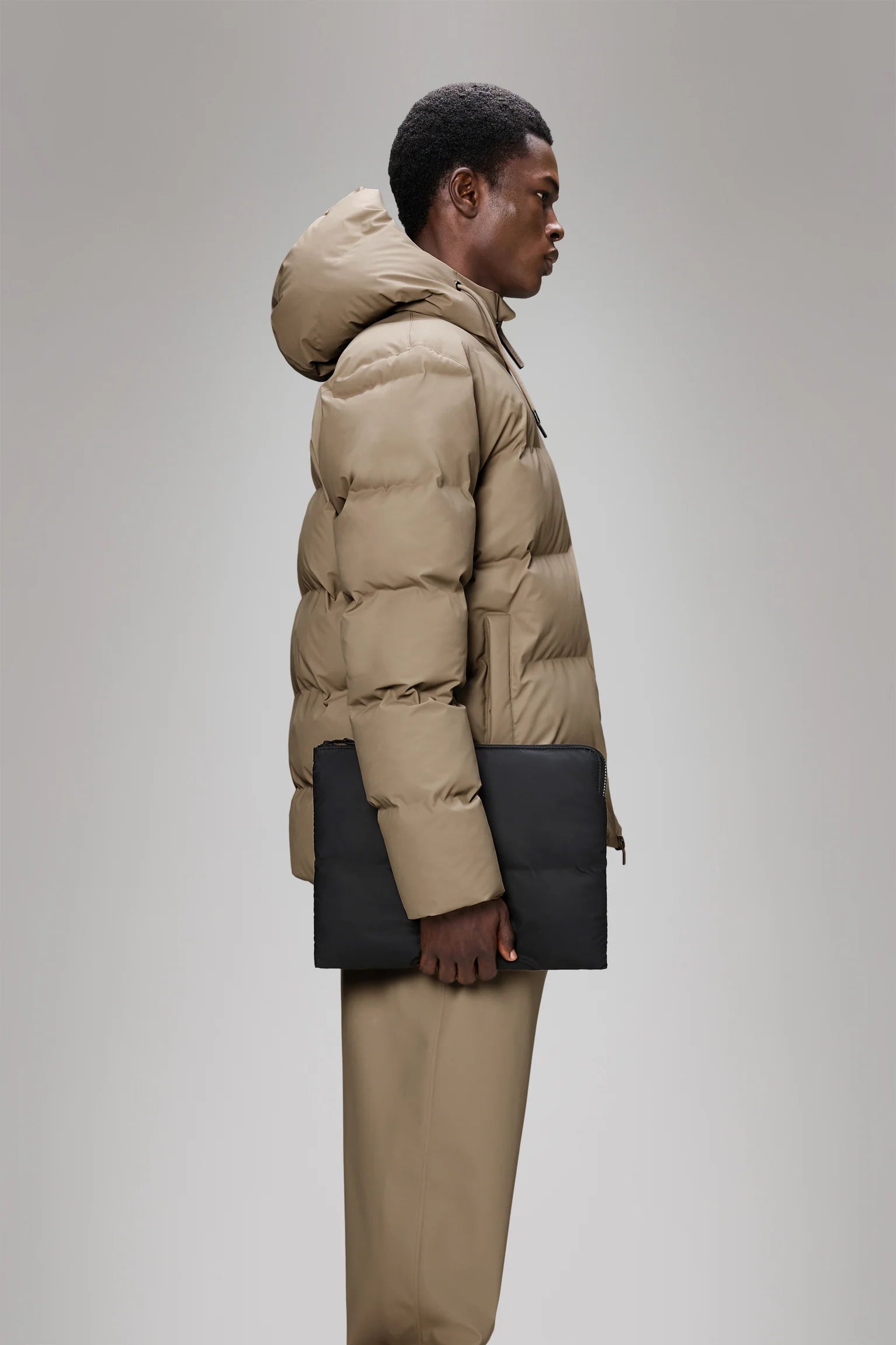 This laptop sleeve is cut from Rains’ signature waterproof PU fabric. Design has a puffed and soft aesthetic with great durability.
