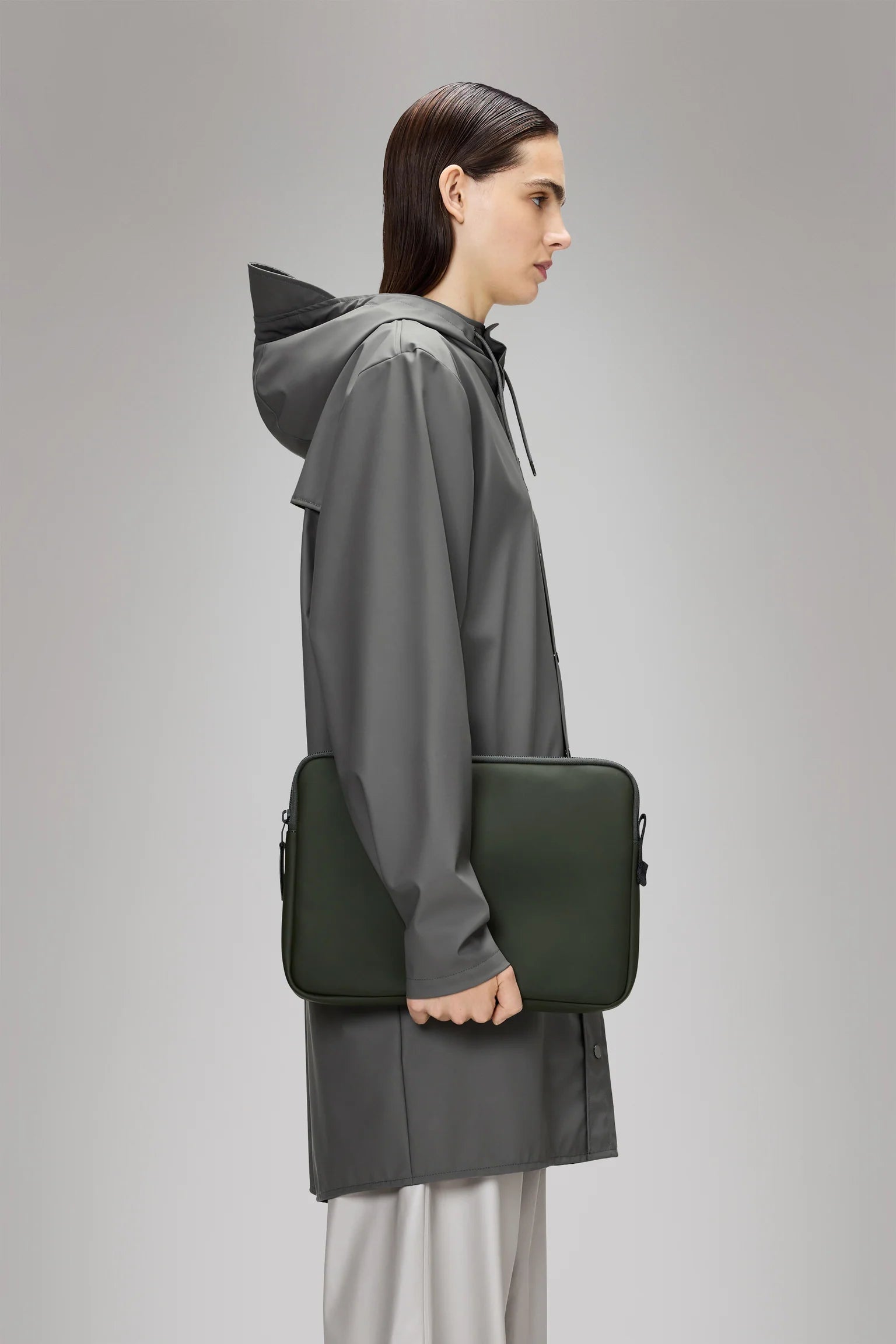 Trail Laptop Case is cut from Rains' signature PU fabric, engineered for carrying strength, durability and a smooth feel.