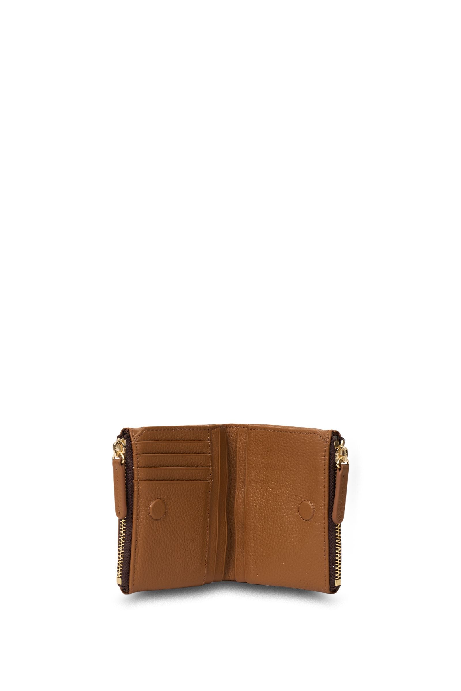 Constructed in buttery smooth leather that has a sleep finish and a soft feel. Eight card slots; four drop pockets; note pocket; zipped coin pouch; gold-plated hardware.