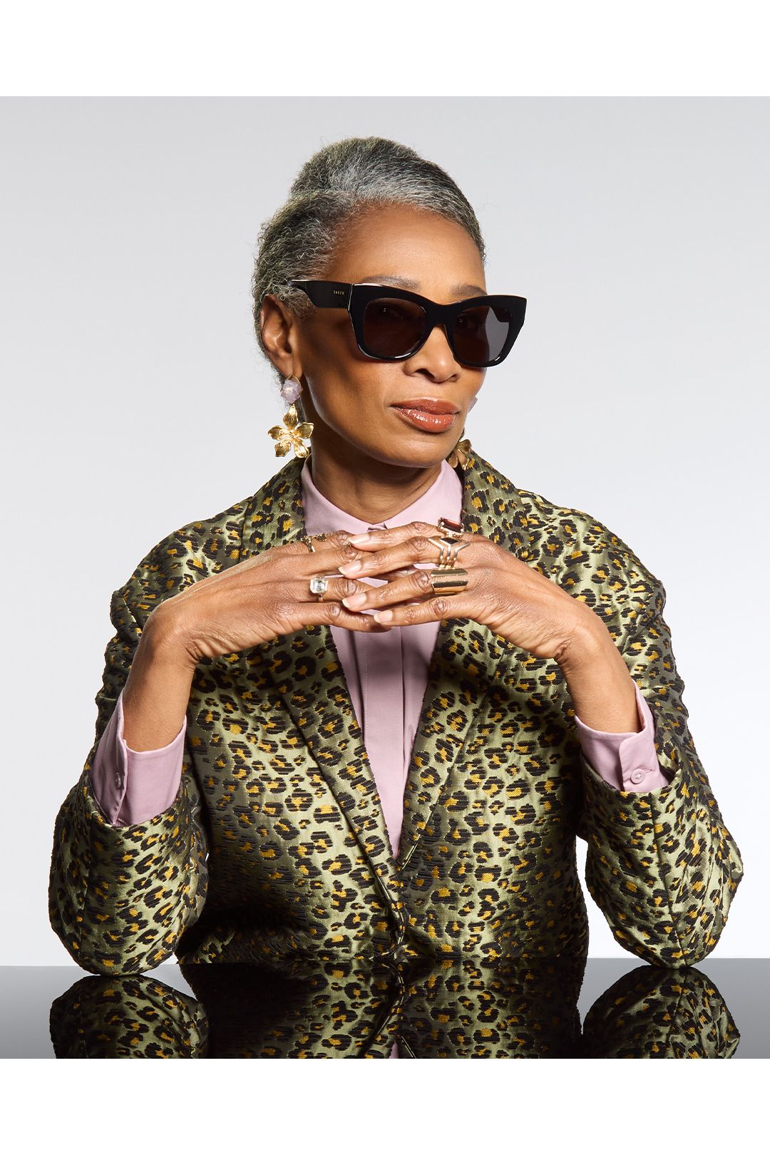 Featuring recessed pale gold hardware that beautifully integrates into the frame’s design and wraps smoothly around the temples, this style wonderfully complements its signature base-frame. The outcome? A delightful lift to your cheekbones that artfully sculpts your face.