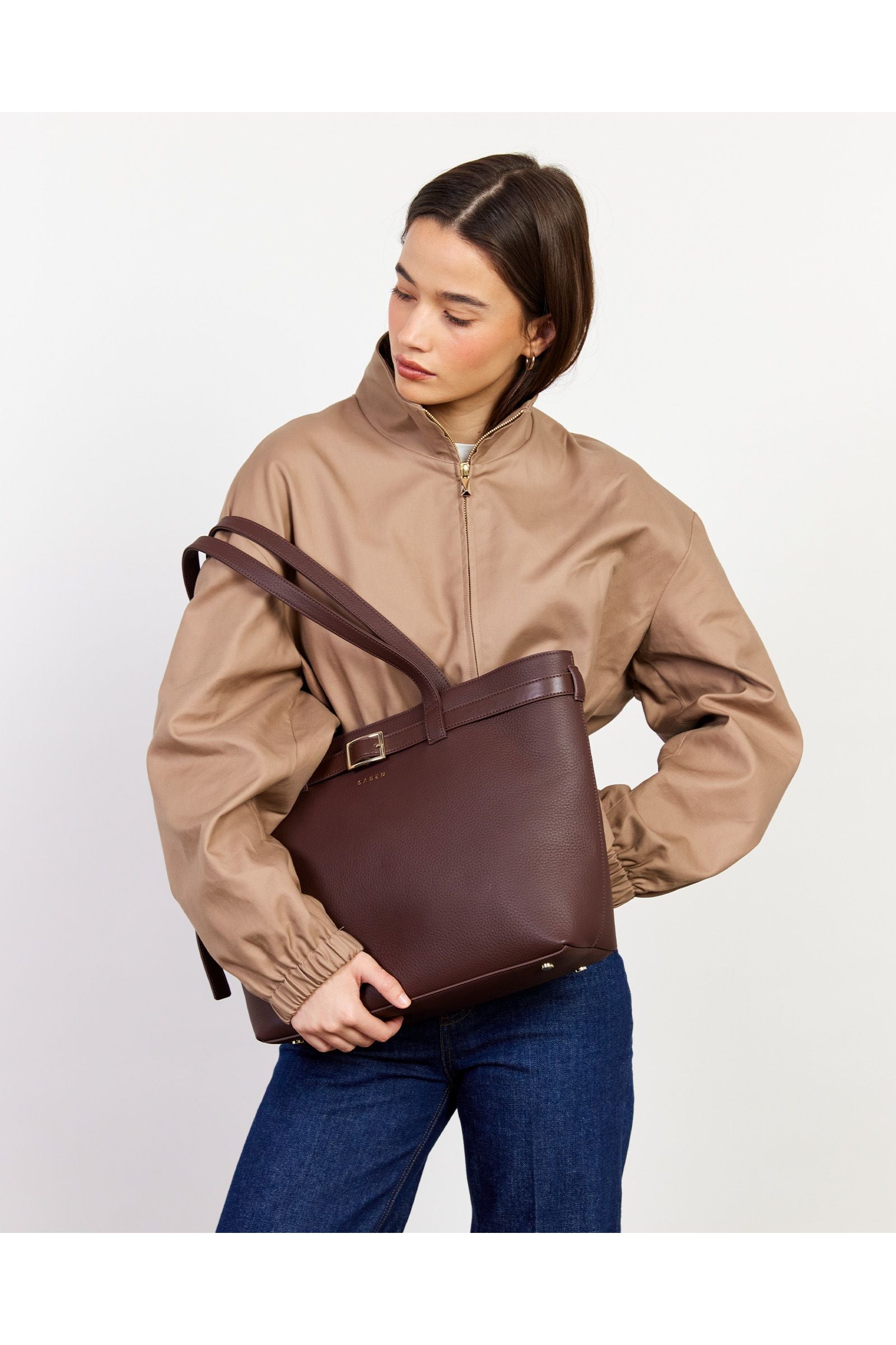 Tabby redefines what it means to be a work tote; Lovingly constructed in premium double-faced leather and finished with a distinctive belt detail that wraps elegantly around the top, she's the perfect blend of structure and style. Boasting a chic, surprise-and-delight interior and clever back pocket that unzips at the bottom to create a trolley sleeve, Tabby is designed for the modern commuter.