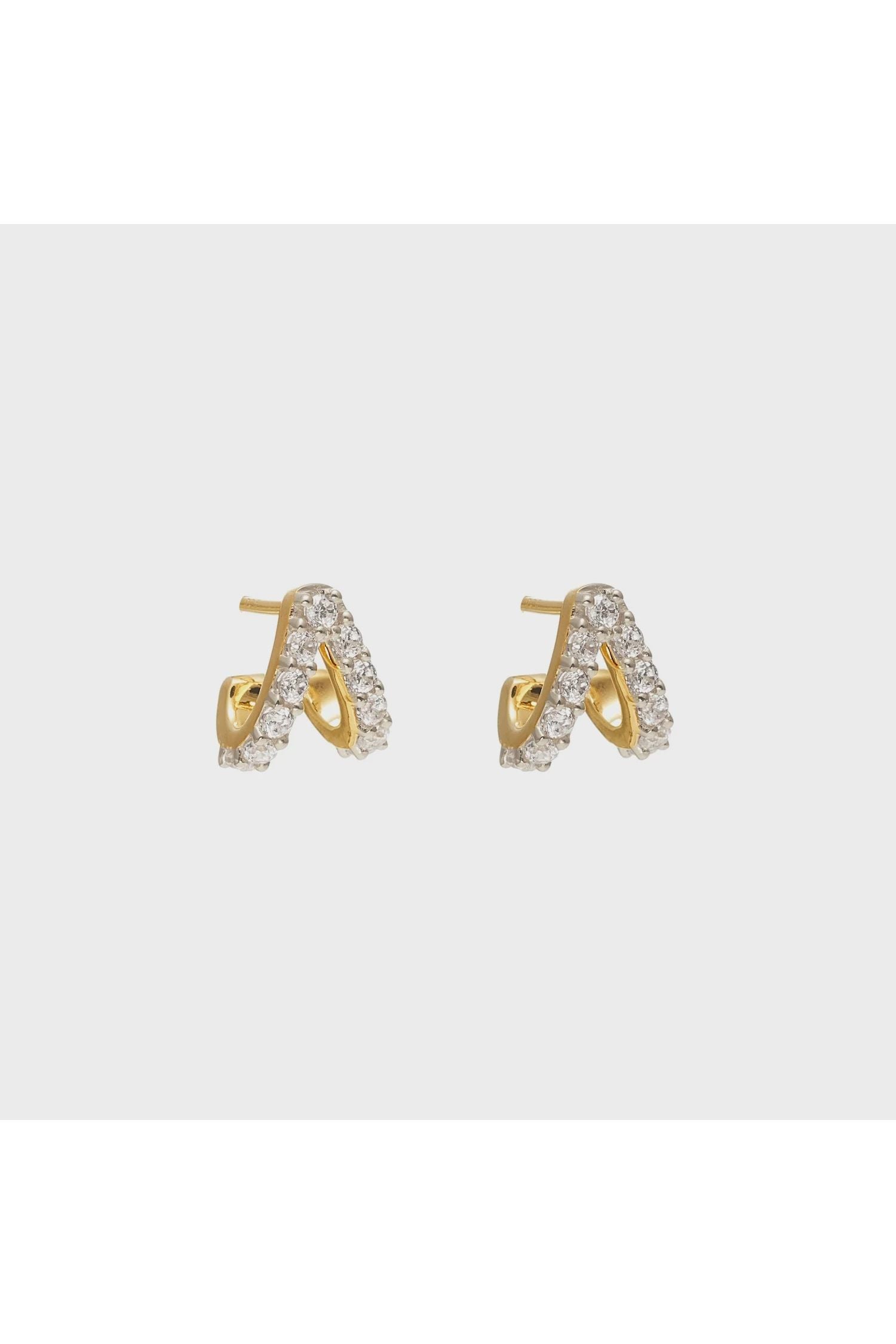 The Aria Earrings are handcrafted in 14k gold-plated sterling silver or rhodium plated sterling silver, featuring a modern V-shaped design that hugs the lobe for a sleek, contoured fit. These mini double hoop earrings are handset with brilliant white zirconia, reflecting the light with diamond-like clarity.