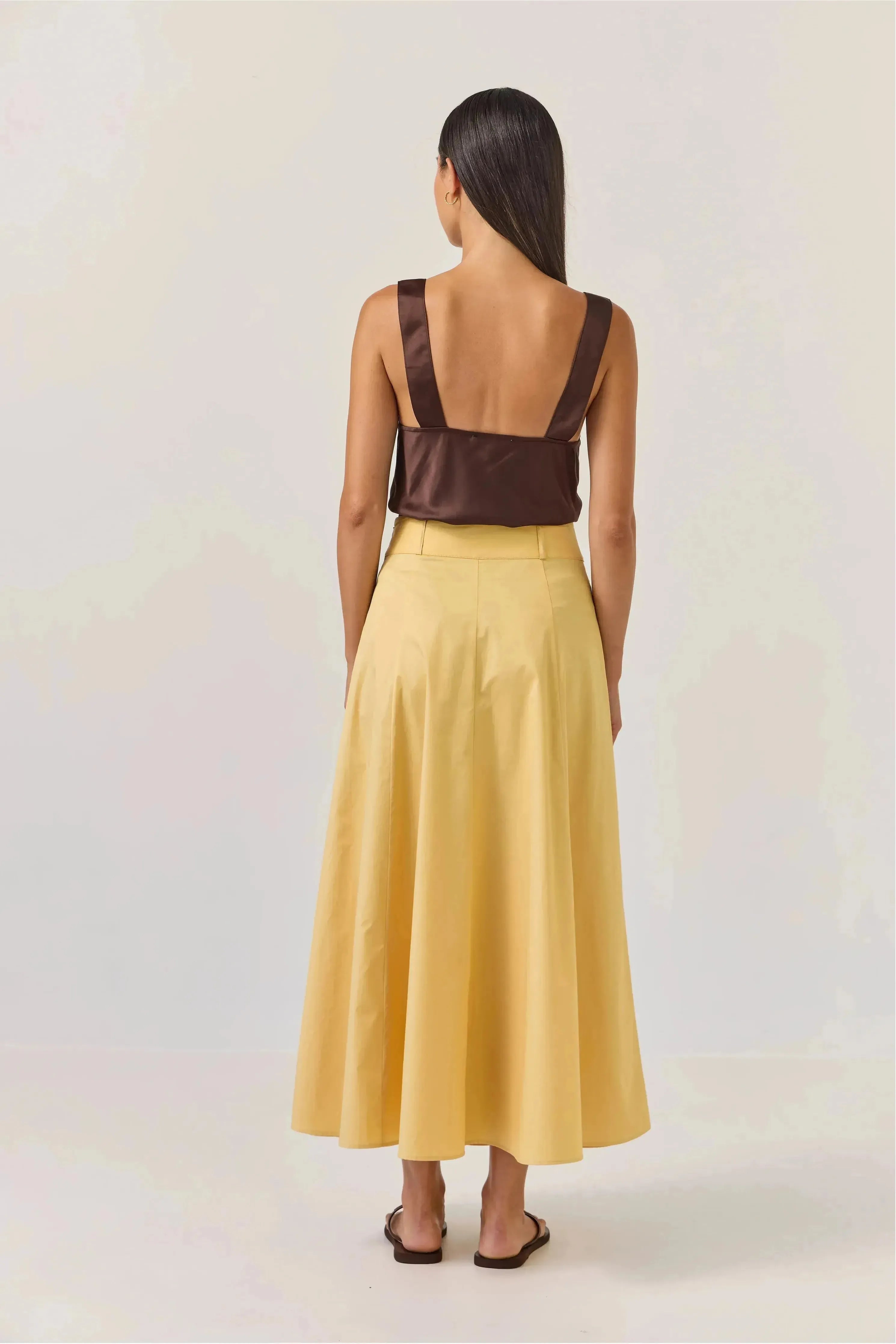 A brand new maxi-skirt shape in thee most incredible new season colour.  This 100% cotton beauty is a stunning fit with flattering panels from waist to hem. Simply pair with your fave cami or tee for an elevated everyday vibe. This piece is truly versatile, equally suited to work and vacation. You will LOVE!