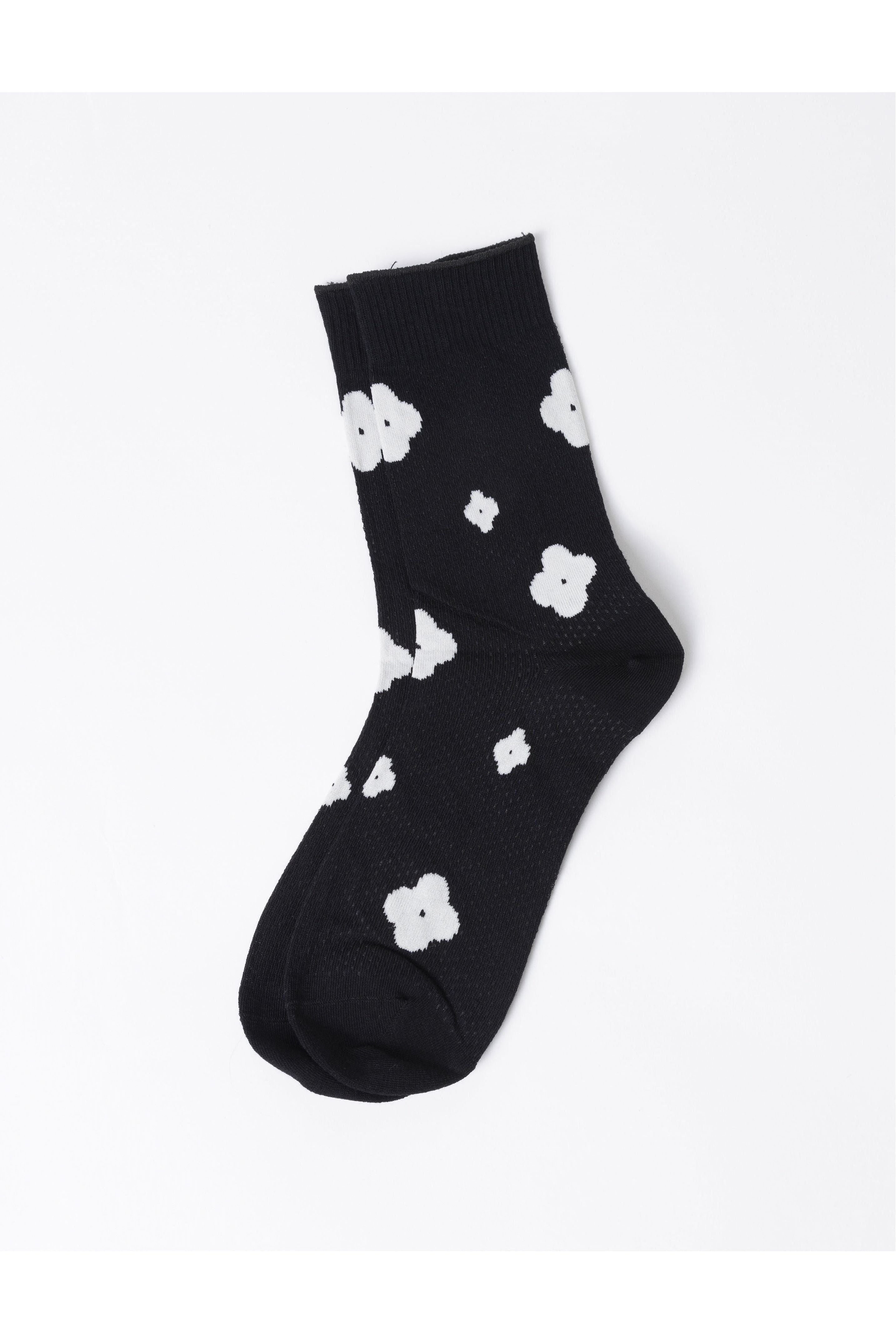 Brighten up your basics with the Floral Crew Sock in classic black, sprinkled with playful white flower motifs. Made from a soft, breathable cotton blend with added stretch, this everyday essential offers all-day comfort with a touch of whimsy.