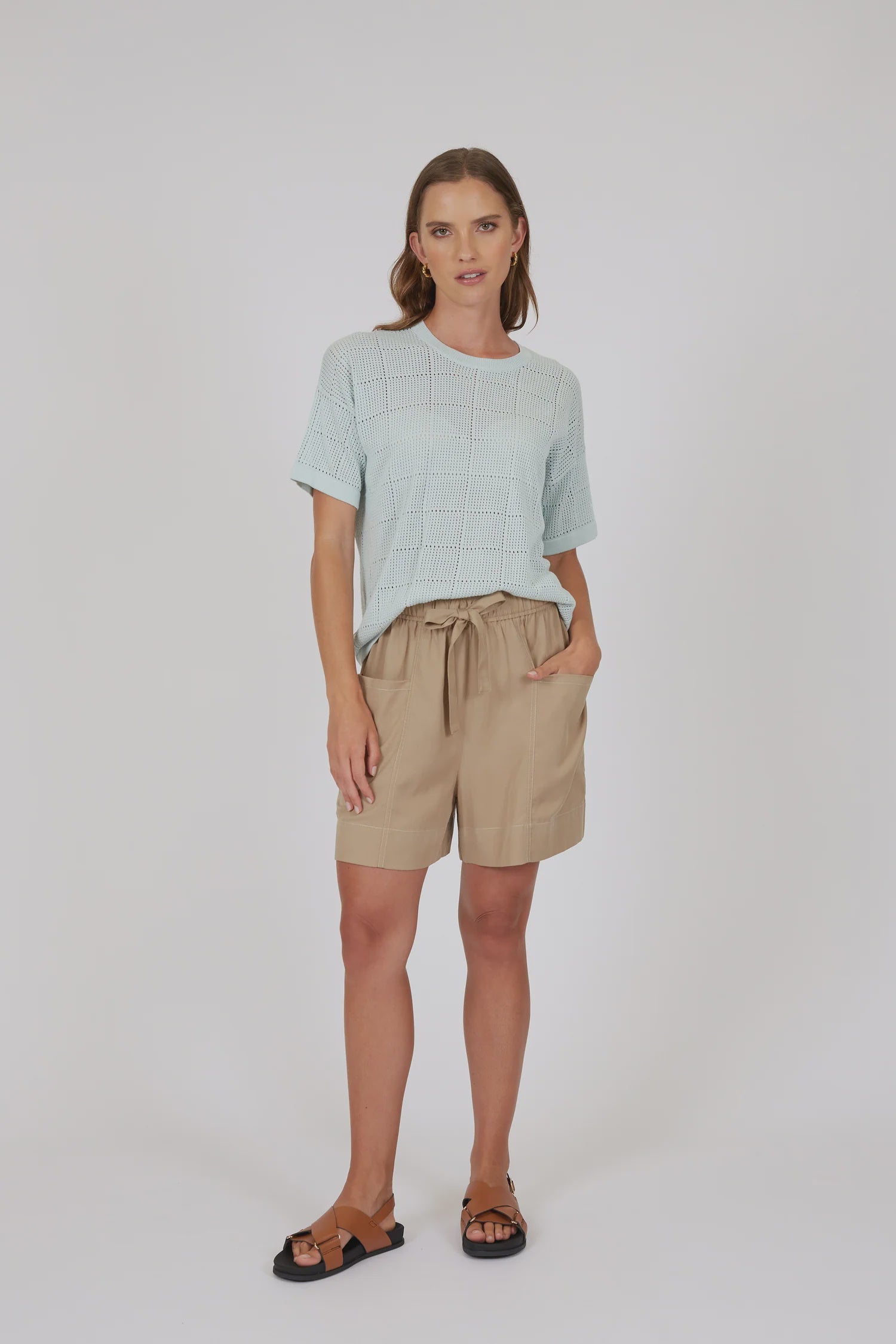 The Halo Knit Tee is the newest addition to our knitwear line, offering an elevated take on the classic tee. Knitted in Marlow's signature relaxed, boxy silhouette, it combines effortless style with everyday comfort. Crafted from a cotton-modal blend, it brings together cotton’s natural softness and breathability with the silky, fluid drape of modal for a luxurious handfeel. Featuring a crew neckline, short sleeves, and subtle ribbed finishes, this lightweight, airy tee is a summer staple.