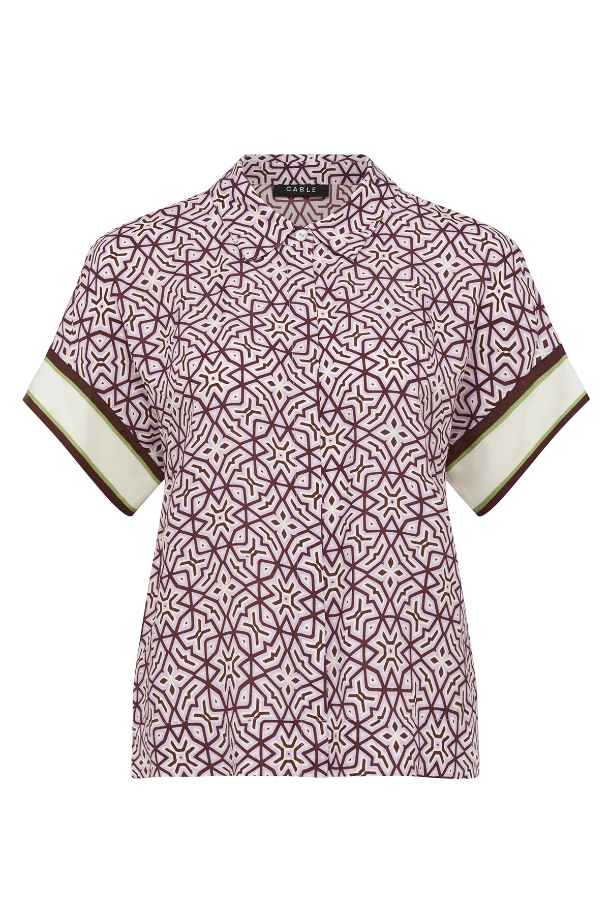 The Nova Blouse is crafted from a lightweight, breathable silk blend twill in an exclusive print. Designed in a relaxed fit, it features short sleeves with a contrast stripe print and a front button closure for an effortless finish. Style with the matching Nova Pant.