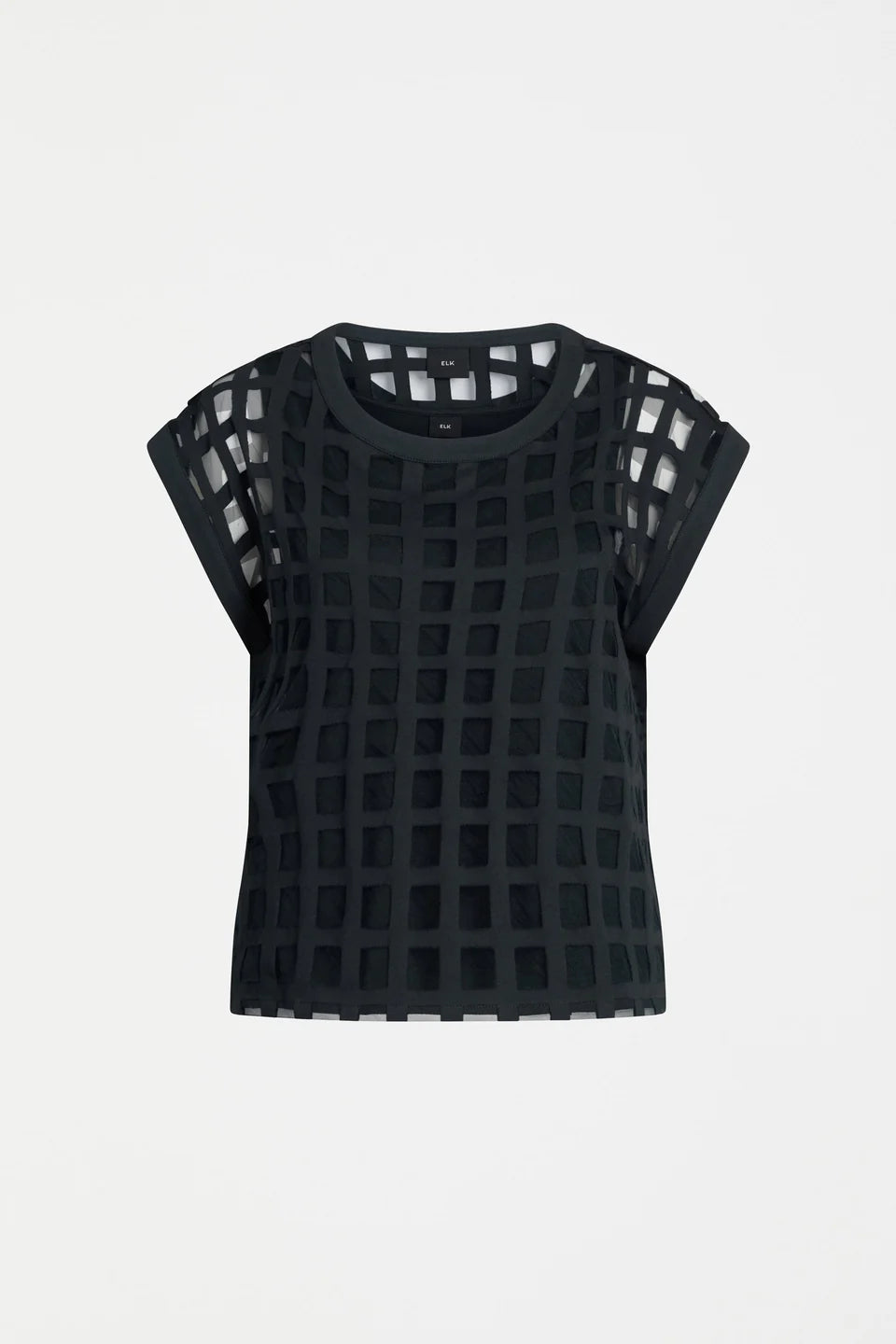 The Grid Burnout Top is a re-imagining of an ELK classic, reintroduced to grace wardrobes with its styling versatility, and day-to-night elegance. The top is accompanied by a scoop-neck singlet with wide straps.