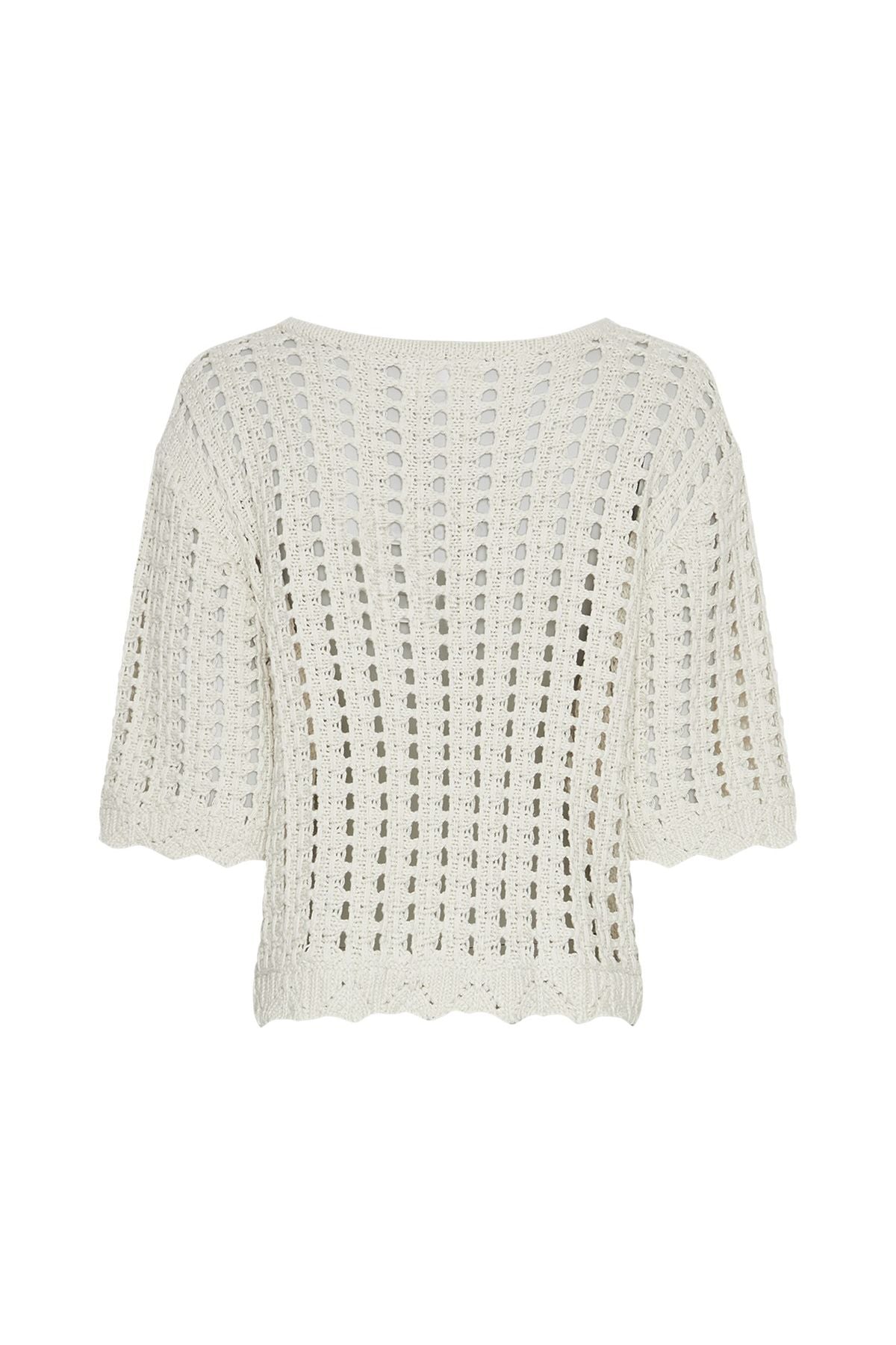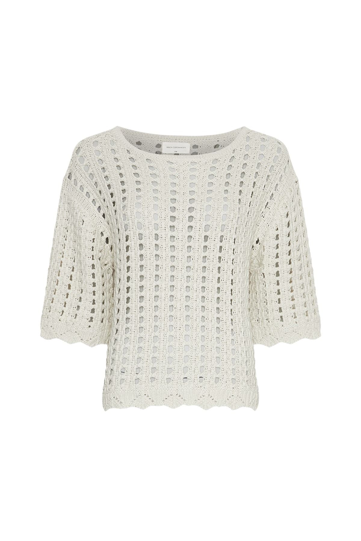 Fairyin is a new knitted style at MSCH Copenhagen. The pullover has a boat neck, short sleeves with dropped shoulders and an open knit design.
