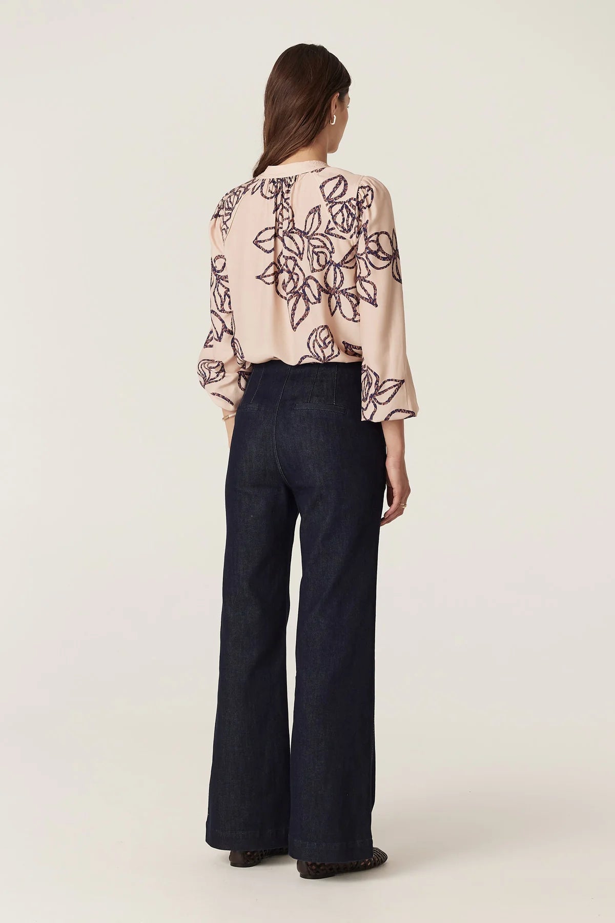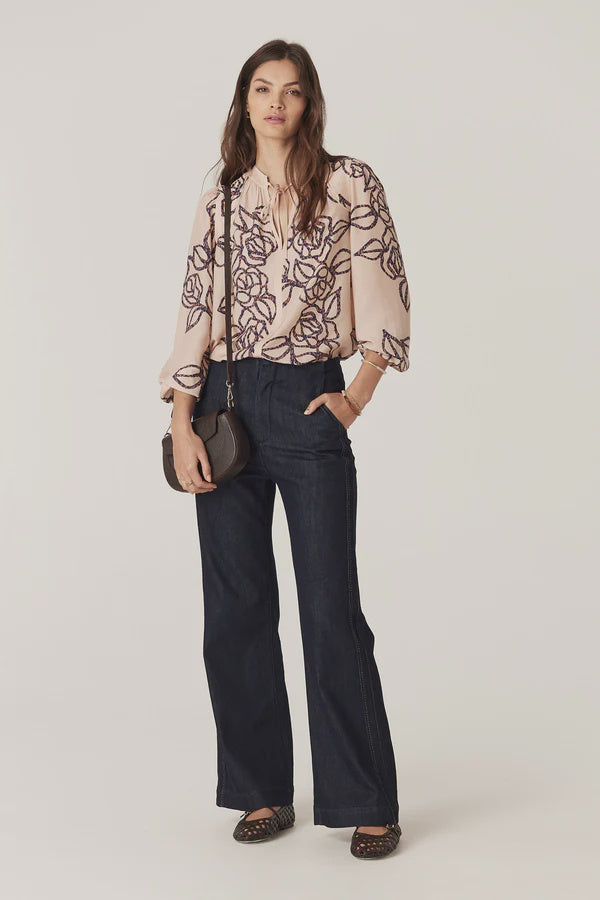 Made from a lightweight, breathable silk blend, the Bloom Blouse features a relaxed fit with a stand collar and tie detail. Designed with full length sleeves finished with elasticated cuffs, this blouse has an effortless drape through the body.