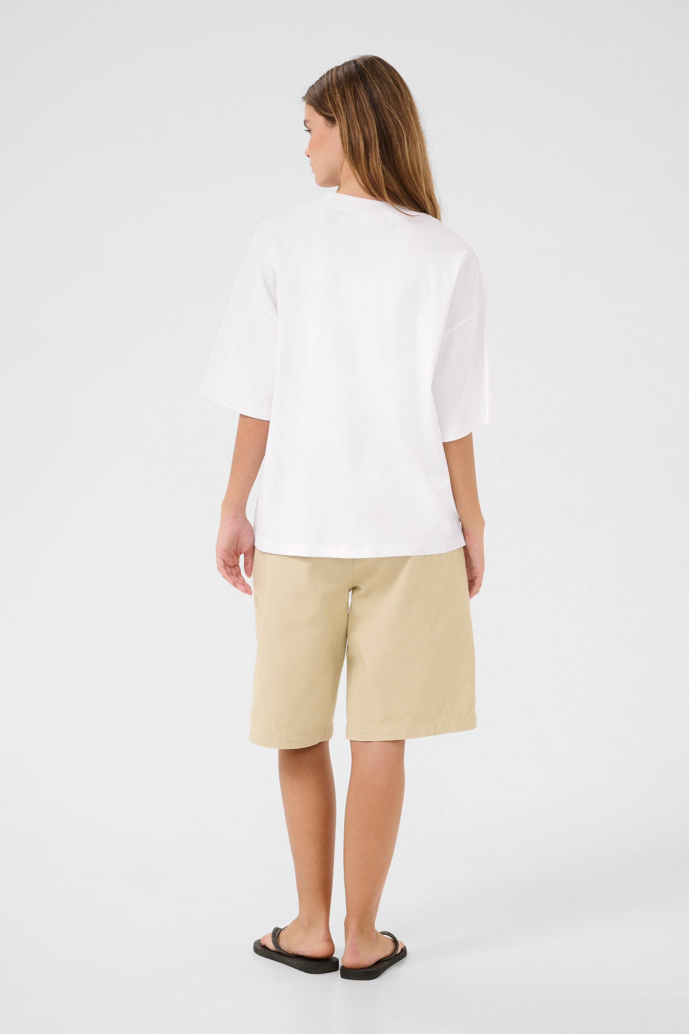 Oversized T-shirt with a subtle, scattered graphic across the chest, dropped shoulders, and a classic crew neckline. Loose fit and elbow-length sleeves enhance its laid-back appeal.