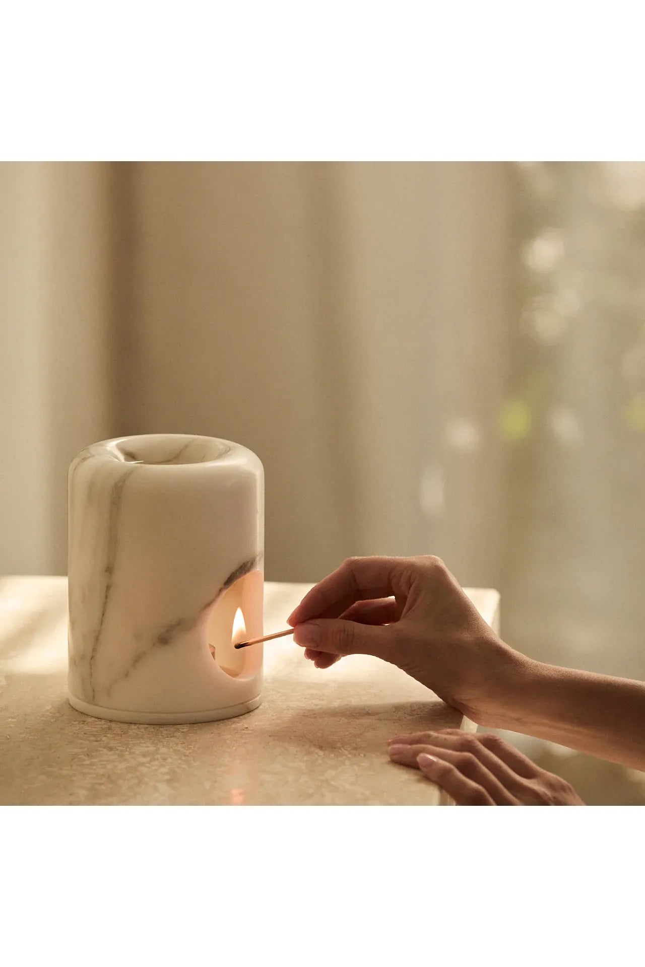 The distinctive grain of marble is unique to each Oil Burner, adding a special and compelling vibe to your space even before the candle is lit.