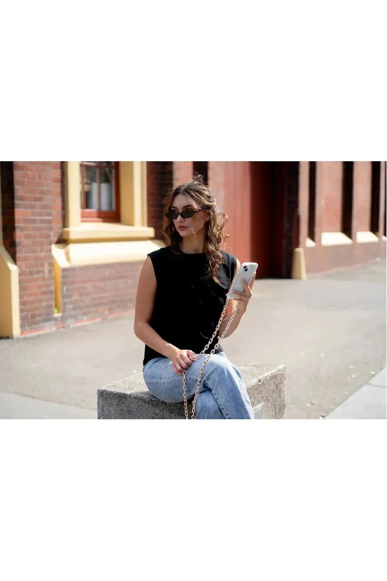 This stainless steel, lightweight yet sturdy phone chain provides a simple and elegant 120cm cross-body look. Its stainless steel rotating carabiners and rings attach to Cantermelon's universal adapters.