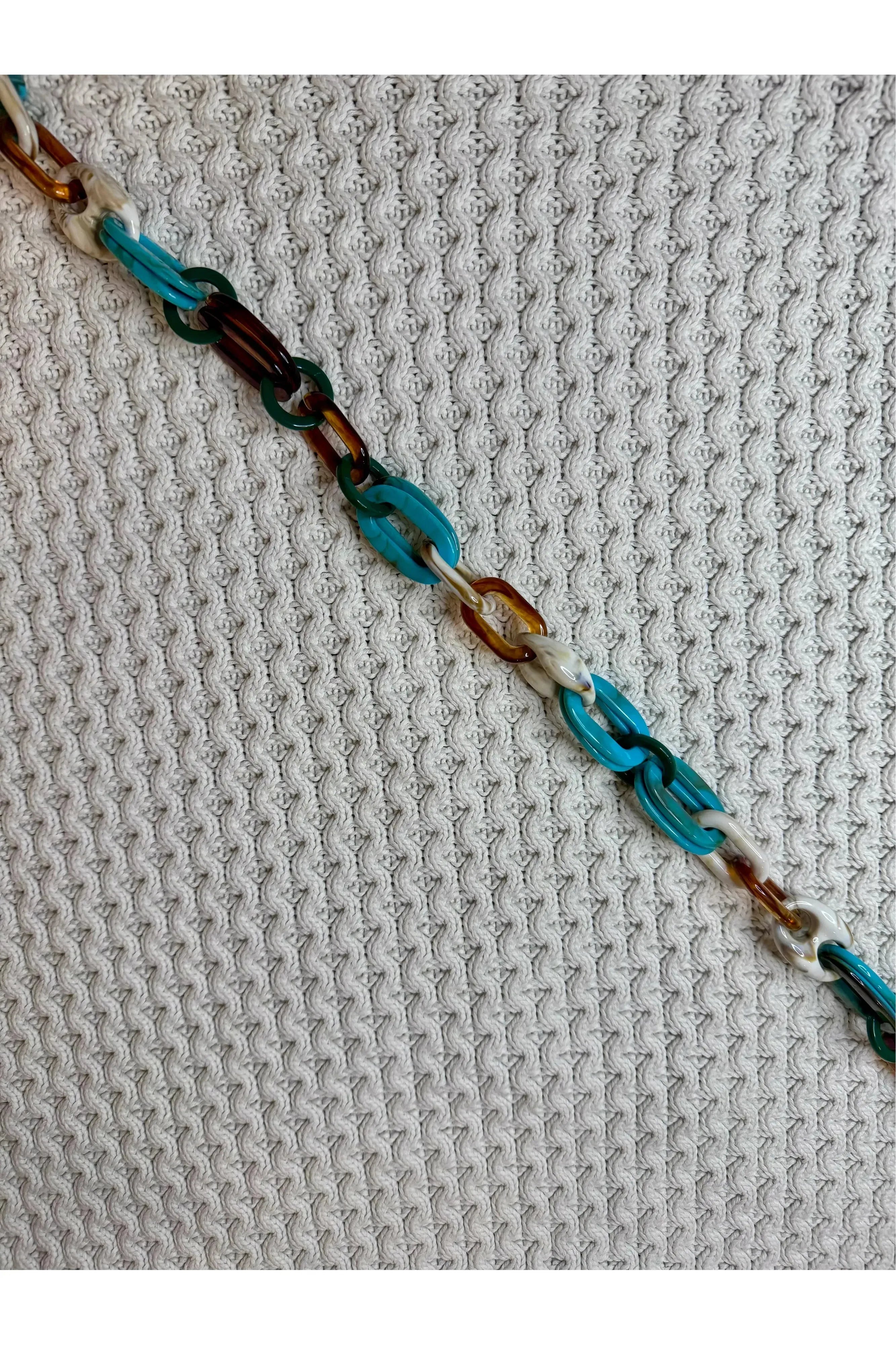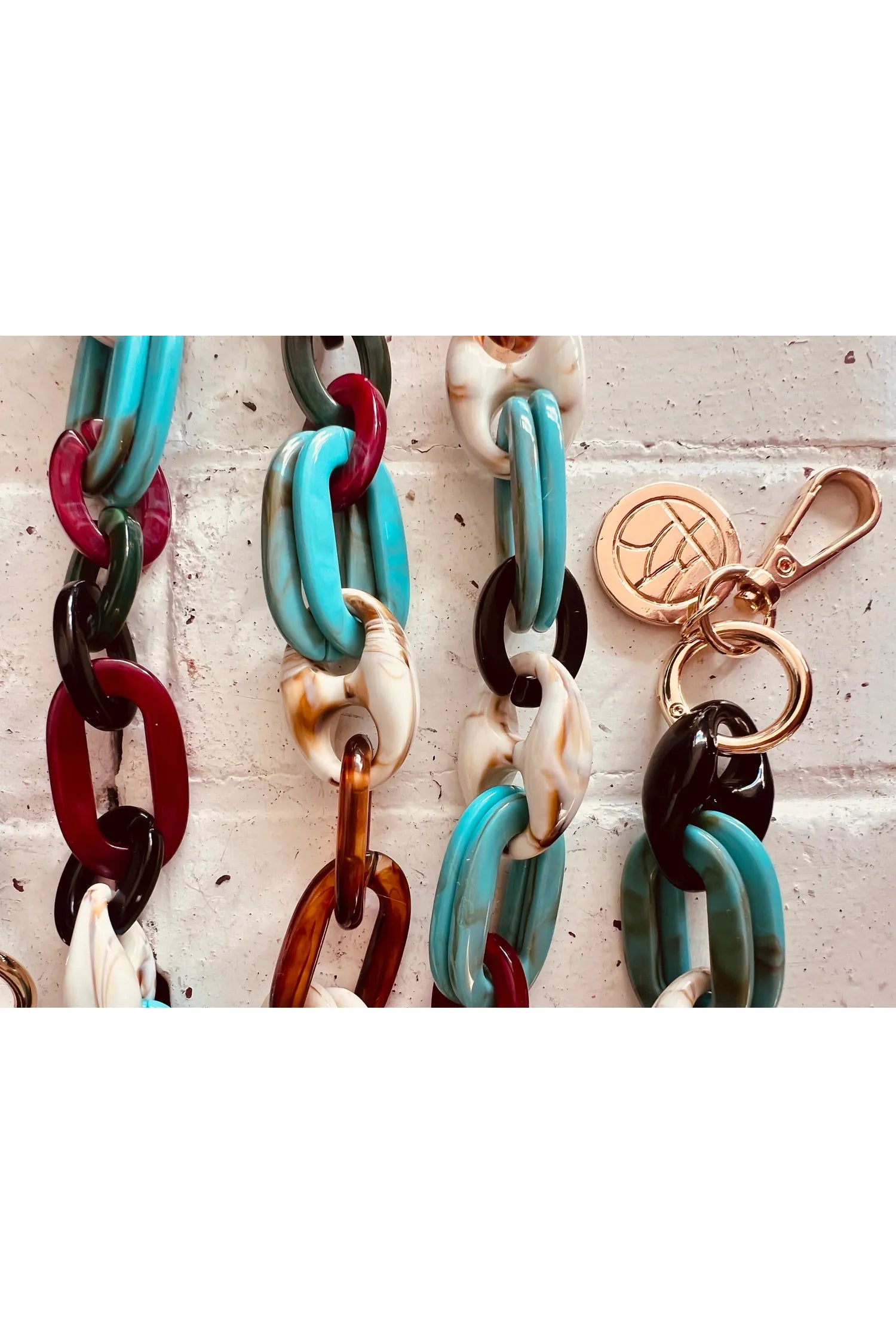 This resin link phone chain has high-quality, varied resin links and sturdy stainless steel hardware. Designed with Cantermelon's collaborators in Europe, it is made for Aotearoa. The clasp also allows keys or swipe cards to be attached elegantly to your phone chain.
