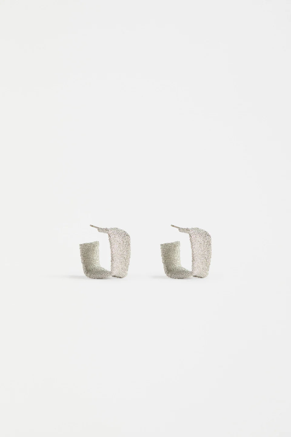 The Detta Hoop Earrings are a sculptural small square hoop with an interesting dusted surface texture that creates a light reflecting sparkle effect. This sparkle effect gives a touch of shine and elegant sophistication to any outfit, pairing beautifully with Detta Bangle as part of a complementary set in classic Gold and Silver.