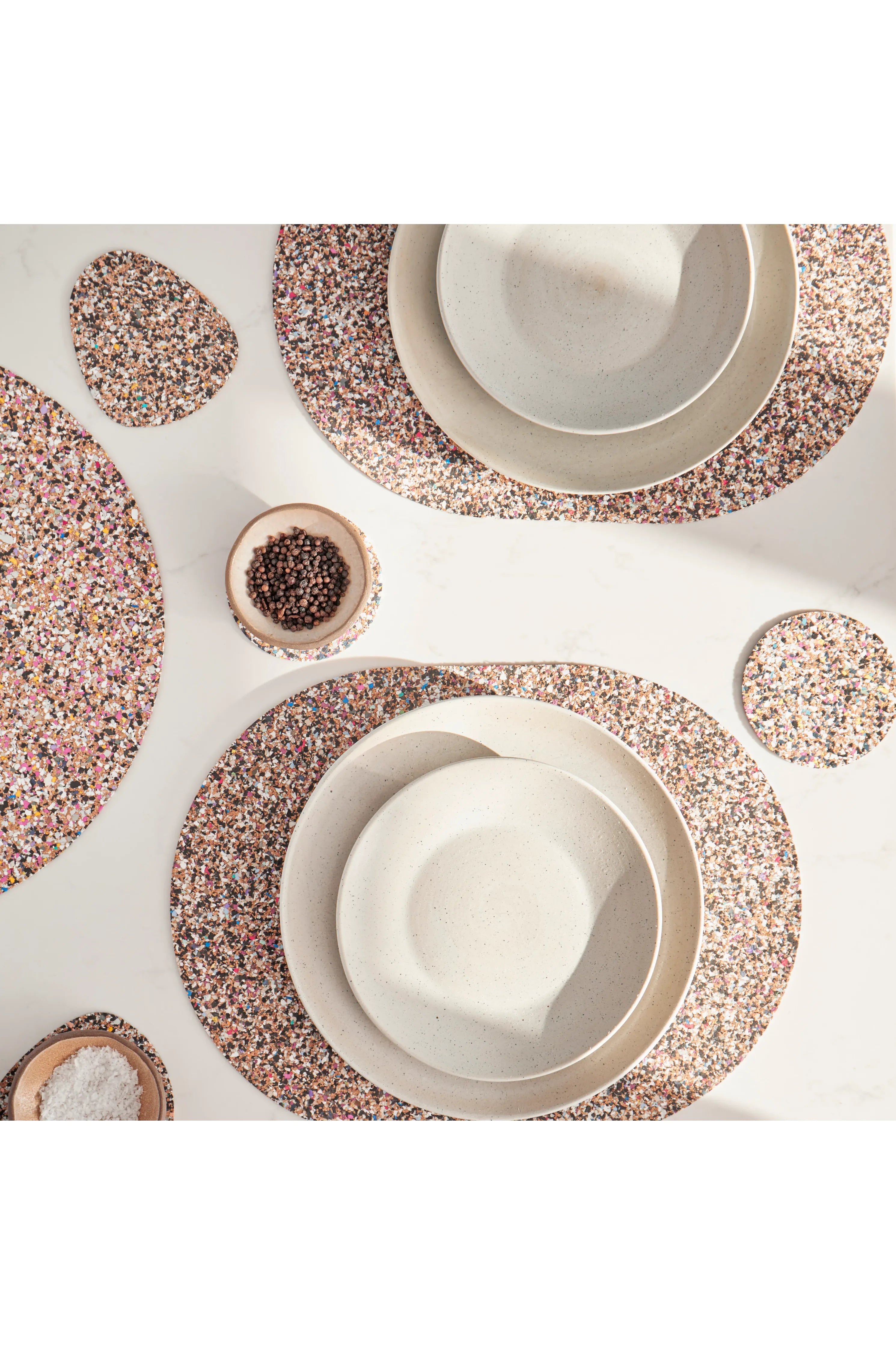 These Placemats are made from recycled EVA plastics and organic cork. This innovative material gives new life and purpose to plastic waste. It transforms discarded materials into beautiful, practical homeware.