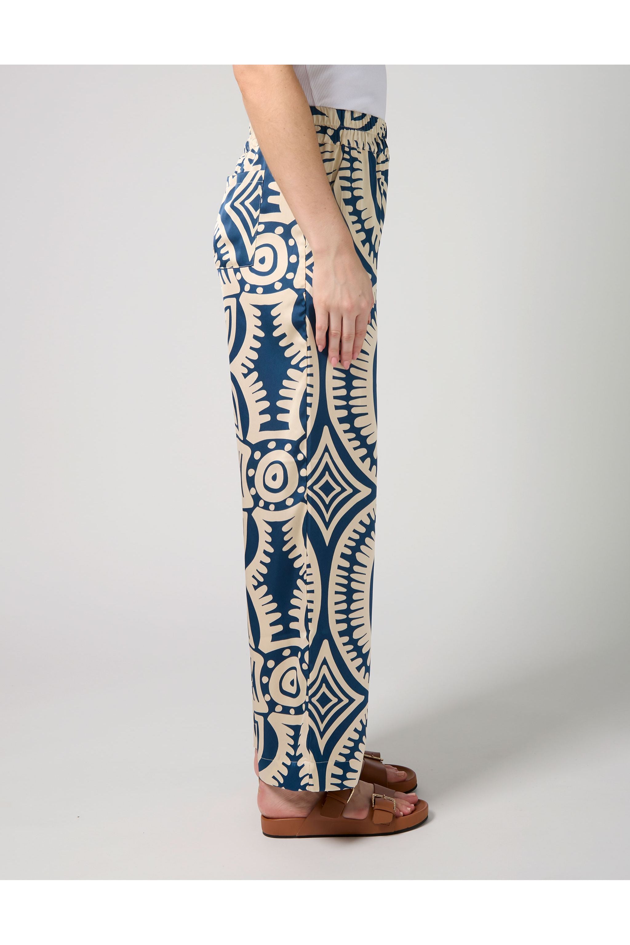 Statement style meets all-day comfort in the Jenna Pant. Cut from smooth 100% polyester, these relaxed-fit trousers feature the exclusive Bellinis on Bondi print. Designed with a flattering wide leg and a comfortable elasticated waistband, the Jenna Pant offers ease of movement without compromising on polish. Side pockets add practicality, while the silky fabric drapes beautifully for a sleek finish.